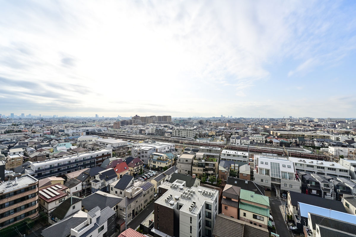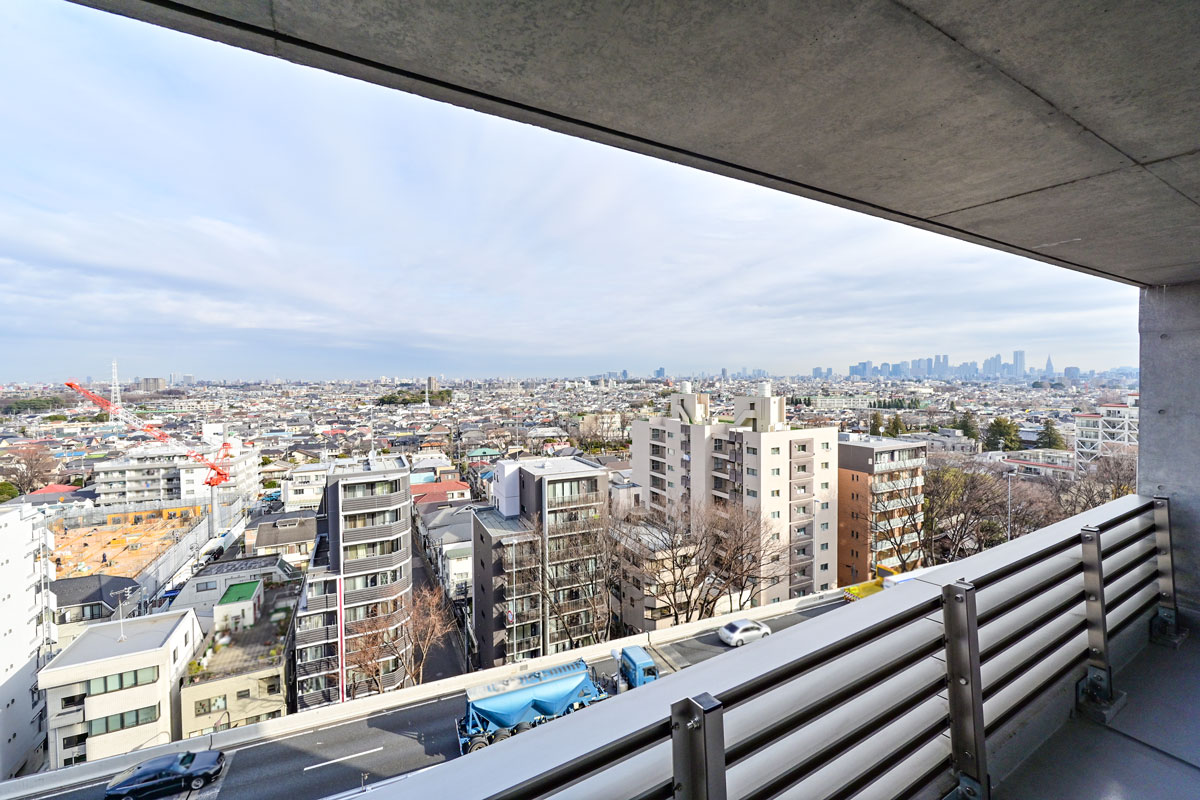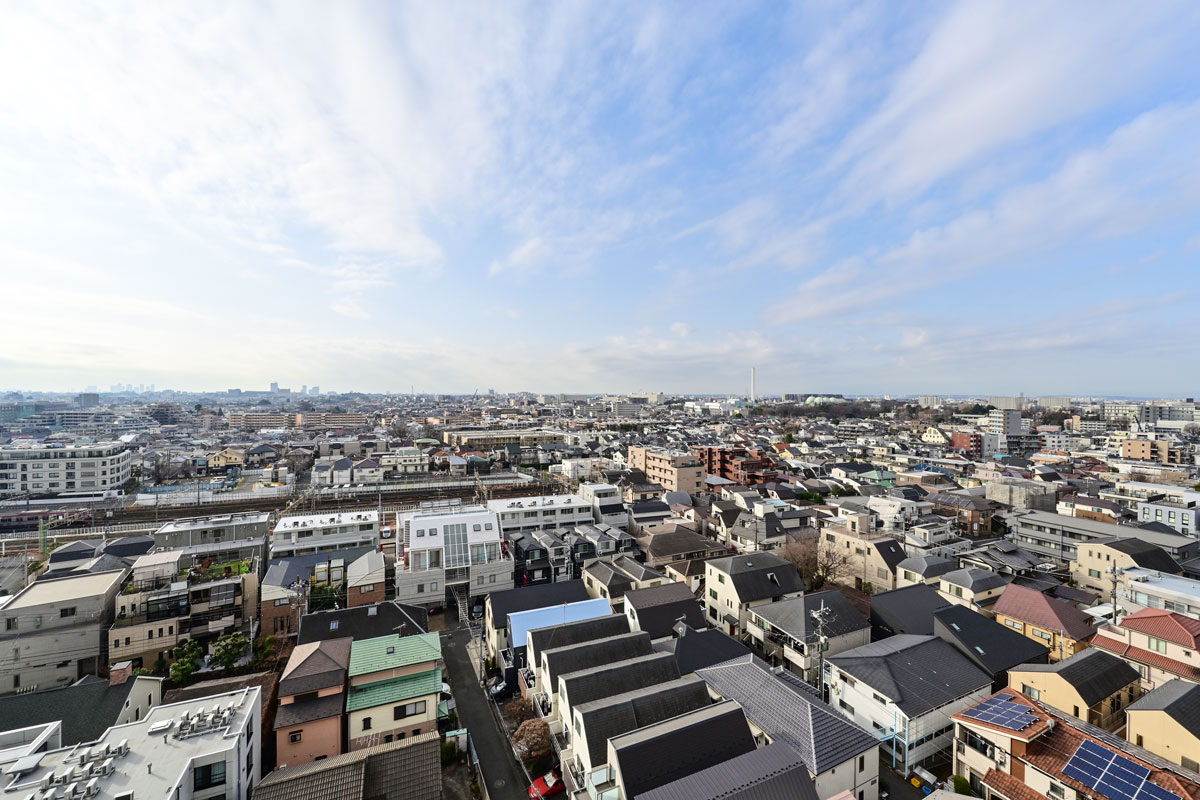 お部屋は12階、南向きで、日当たり、通風とも良好です。世田谷の街並みを一望する開放感あふれる眺めが心地良い、快適な居住空間になっています。