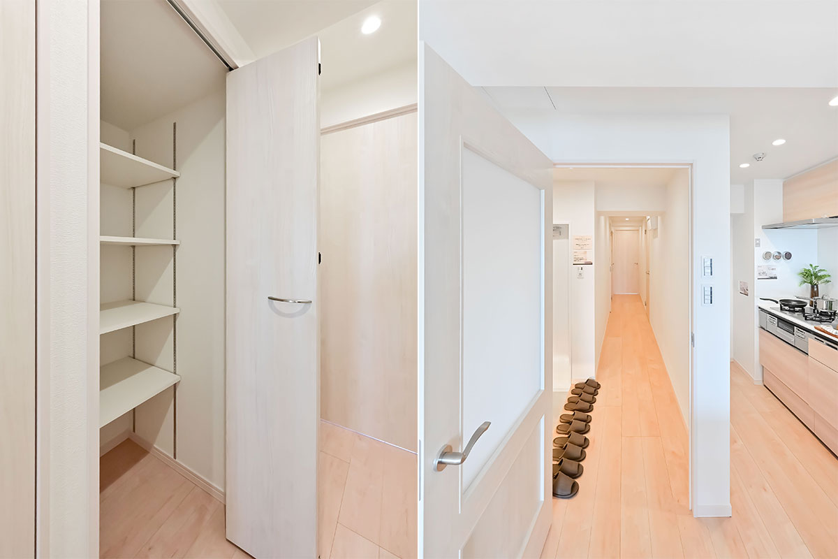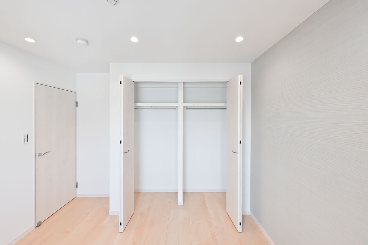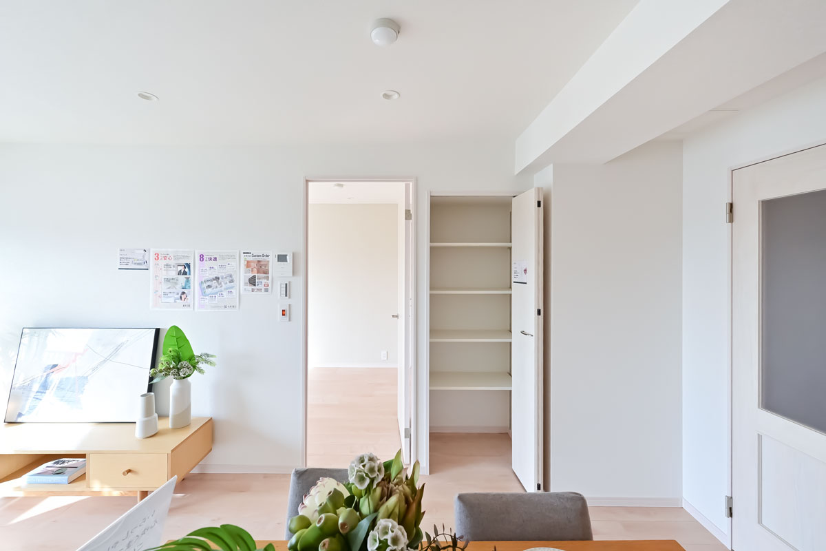 それぞれの居室に収納スペースを確保、廊下・リビングの収納にはコンセントも付いています。家電を充電しながら収納できるのは便利ですね。