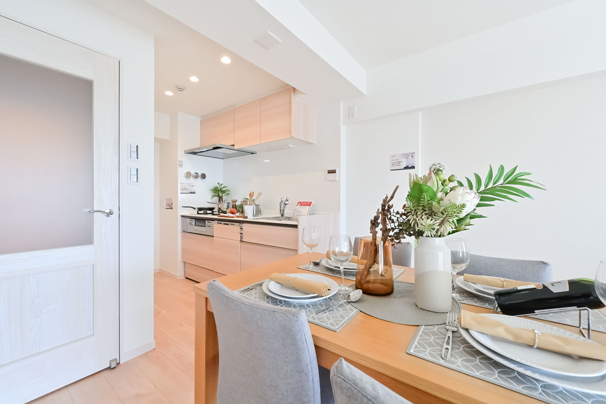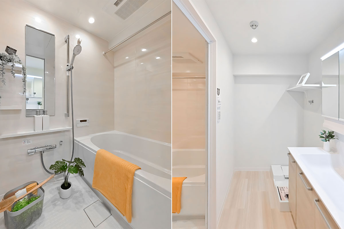 システムキッチンには浄水器・節水効果のある食洗機、ユニットバスには乾燥・追焚機能を備え、保温浴槽も導入。先述のインナーサッシは断熱効果も期待できます。