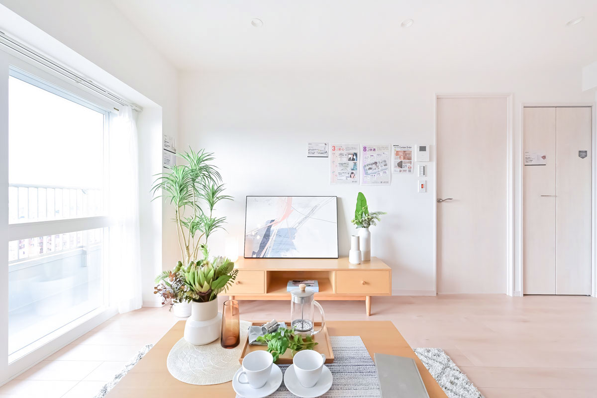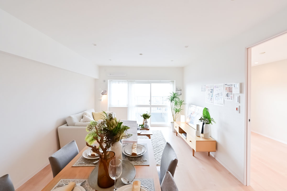 間取りは3LDK、自然光がたっぷりとさし込み、白と優しい木目調のカラーリングに癒されます。