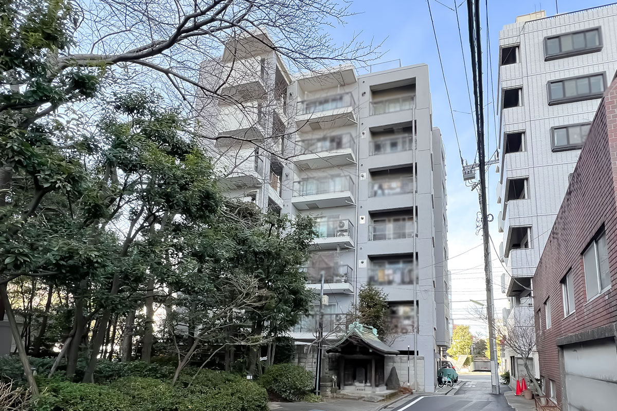 三軒茶屋駅の世田谷通り口を出て西方面へ直進し、環状七号線にあたる若林交差点の少し手前にあるのが本物件です。