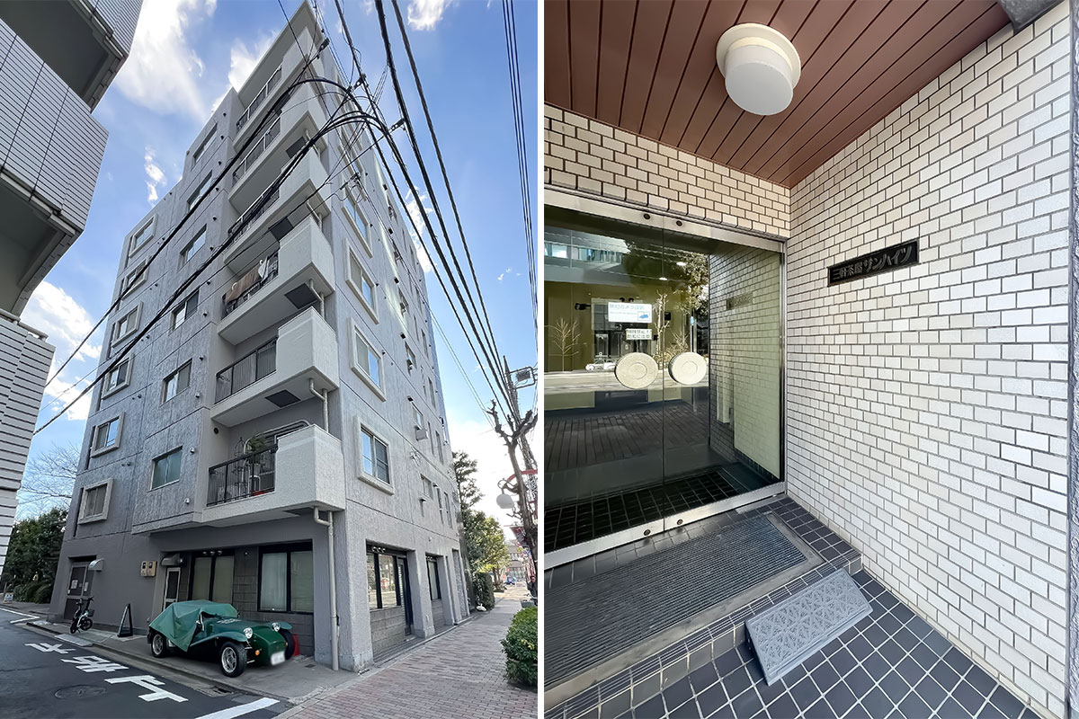 1978年築のヴィンテージマンションですが、共用部は清潔に管理されていました。敷地内には電動キックボードシェアポートがありましたので、自転車を所有していなくても中距離の移動が可能。敷地内駐輪場がないマンションなので便利ですね。