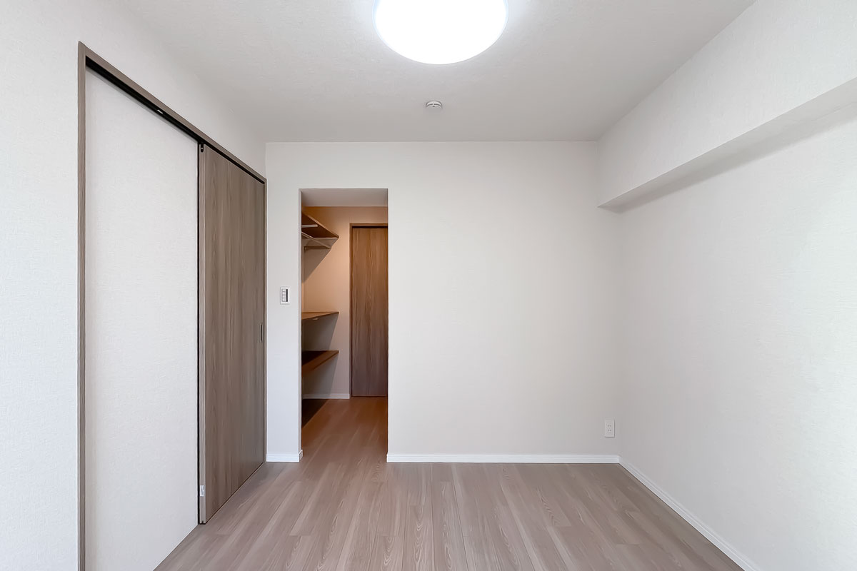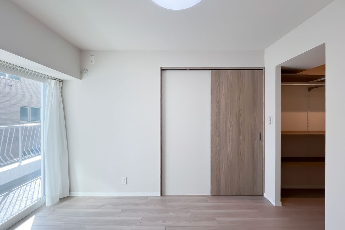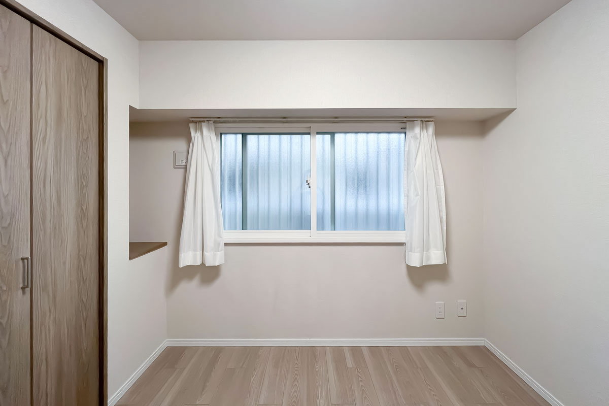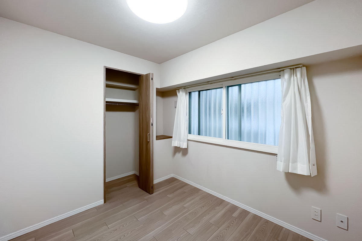 納戸と言っても、4.3帖あり、窓と収納も付いていますので、ご家族どなたかのお部屋として十分利用可能です。バルコニーに面した部屋の日当たりは良く、眺望は近隣マンションですが、建物間のスペースが確保されているので圧迫感は感じませんでした。