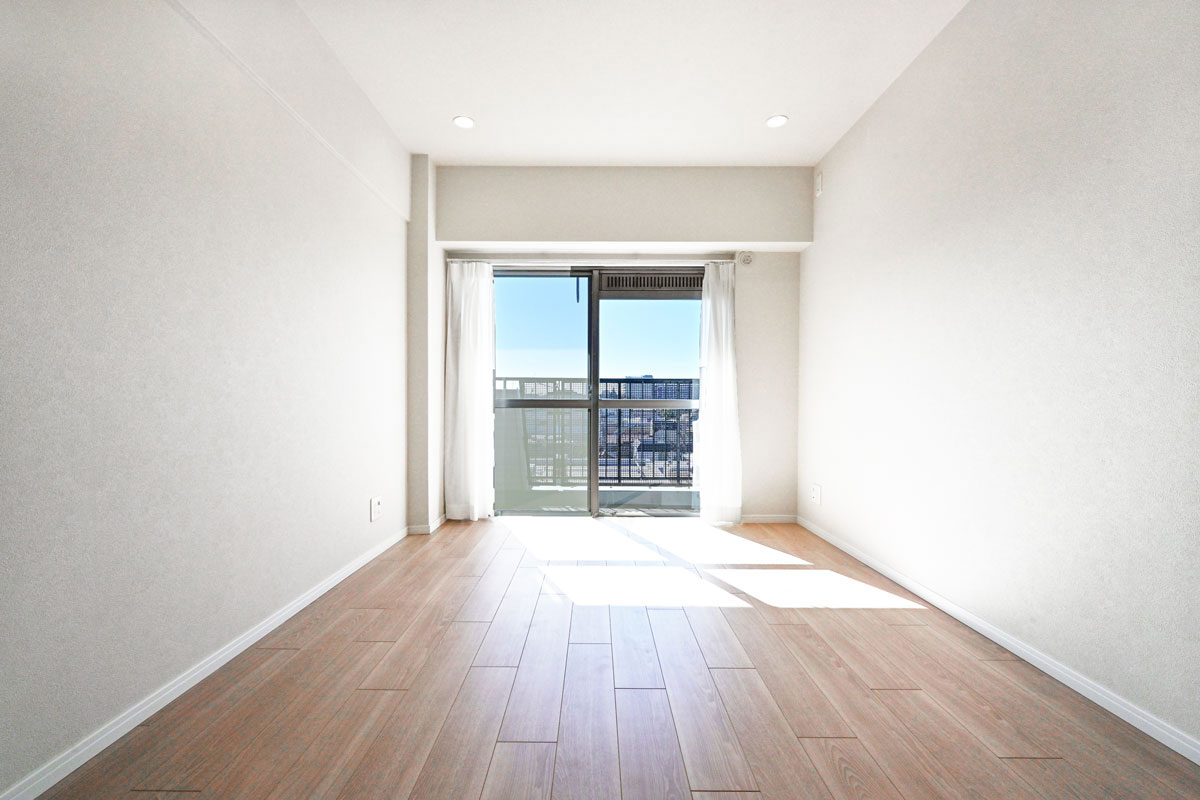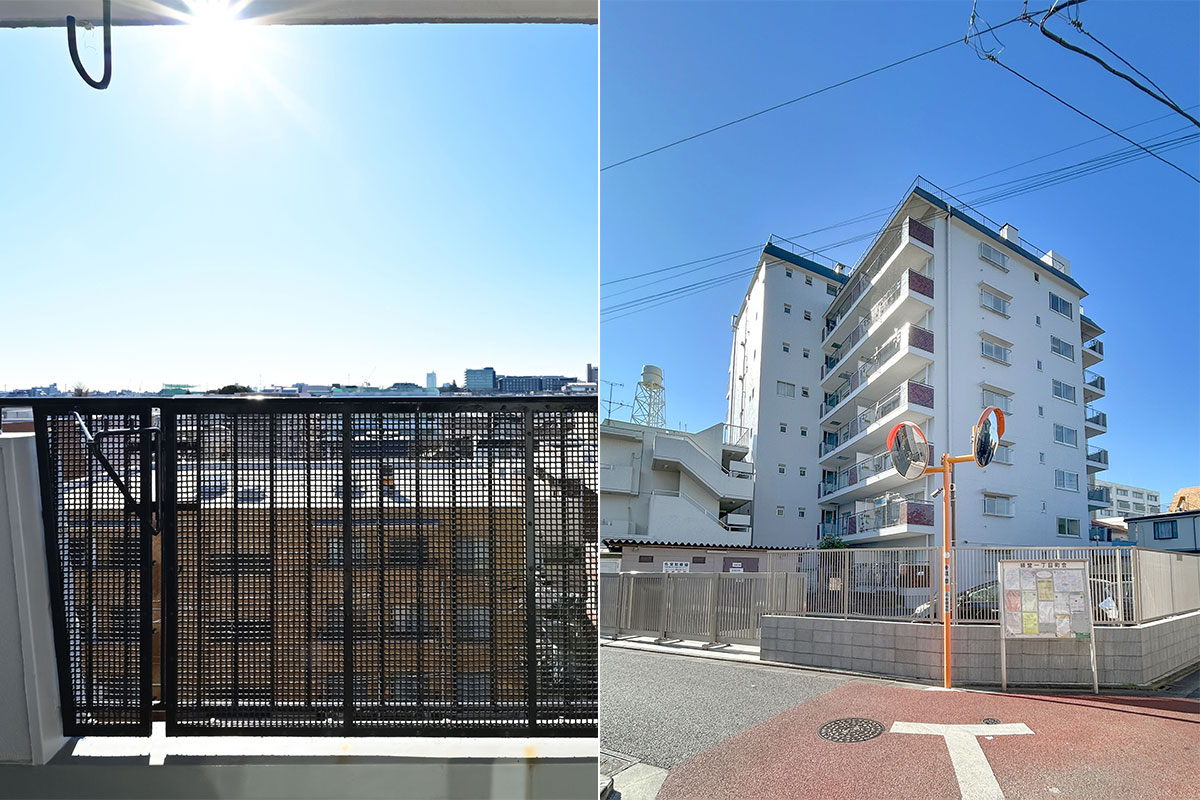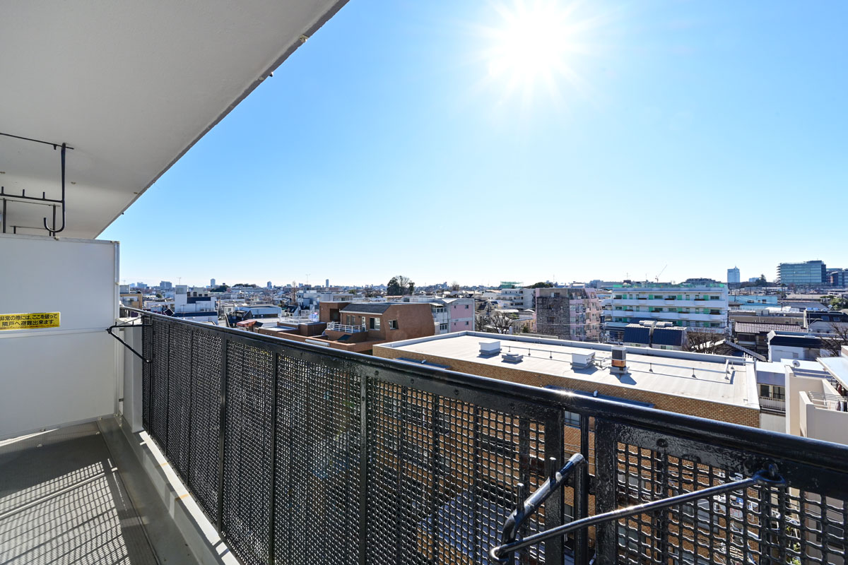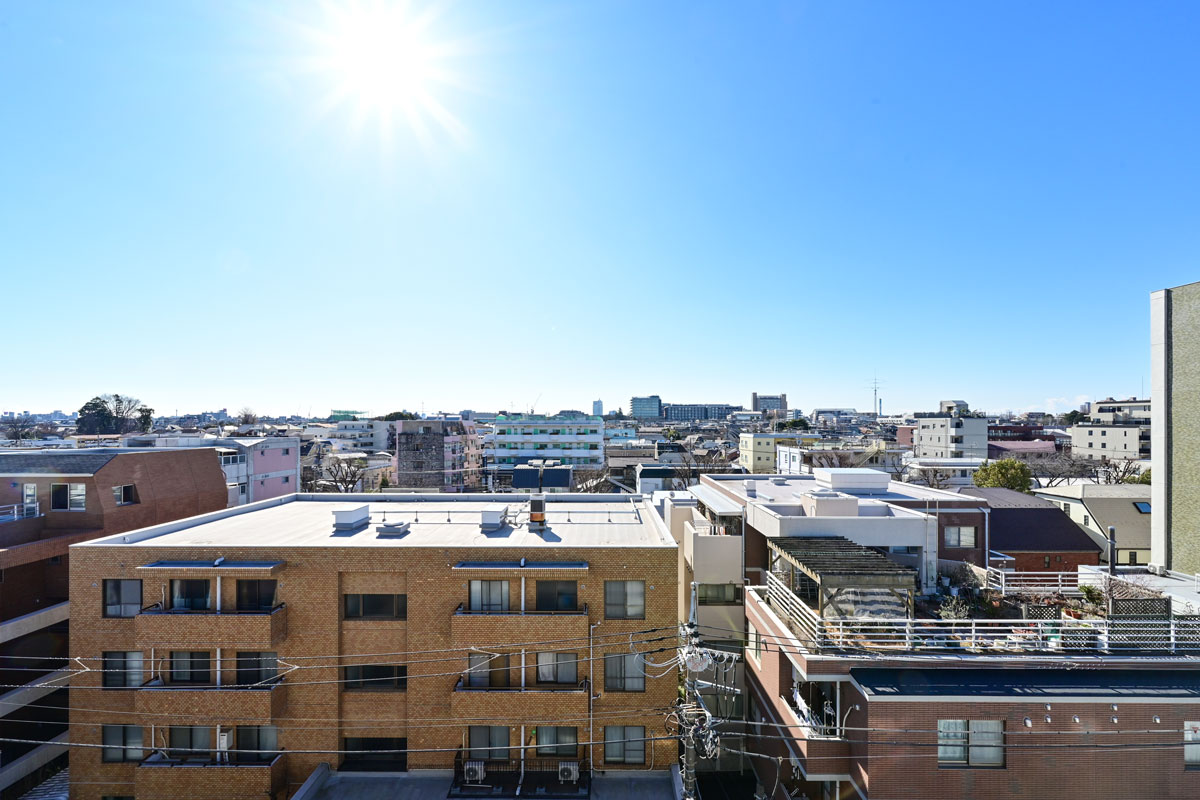 ご紹介するお部屋は6階、開放感たっぷりの眺望と、南向きの明るい日差しが魅力です。