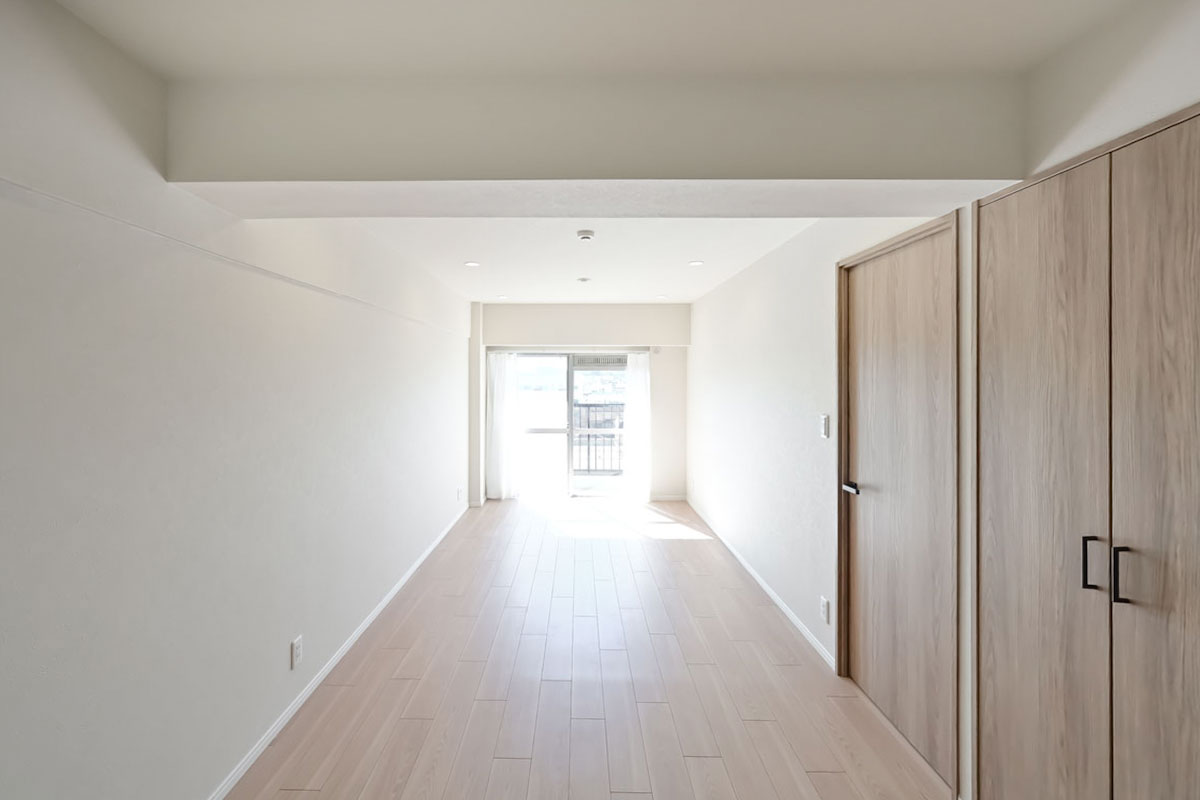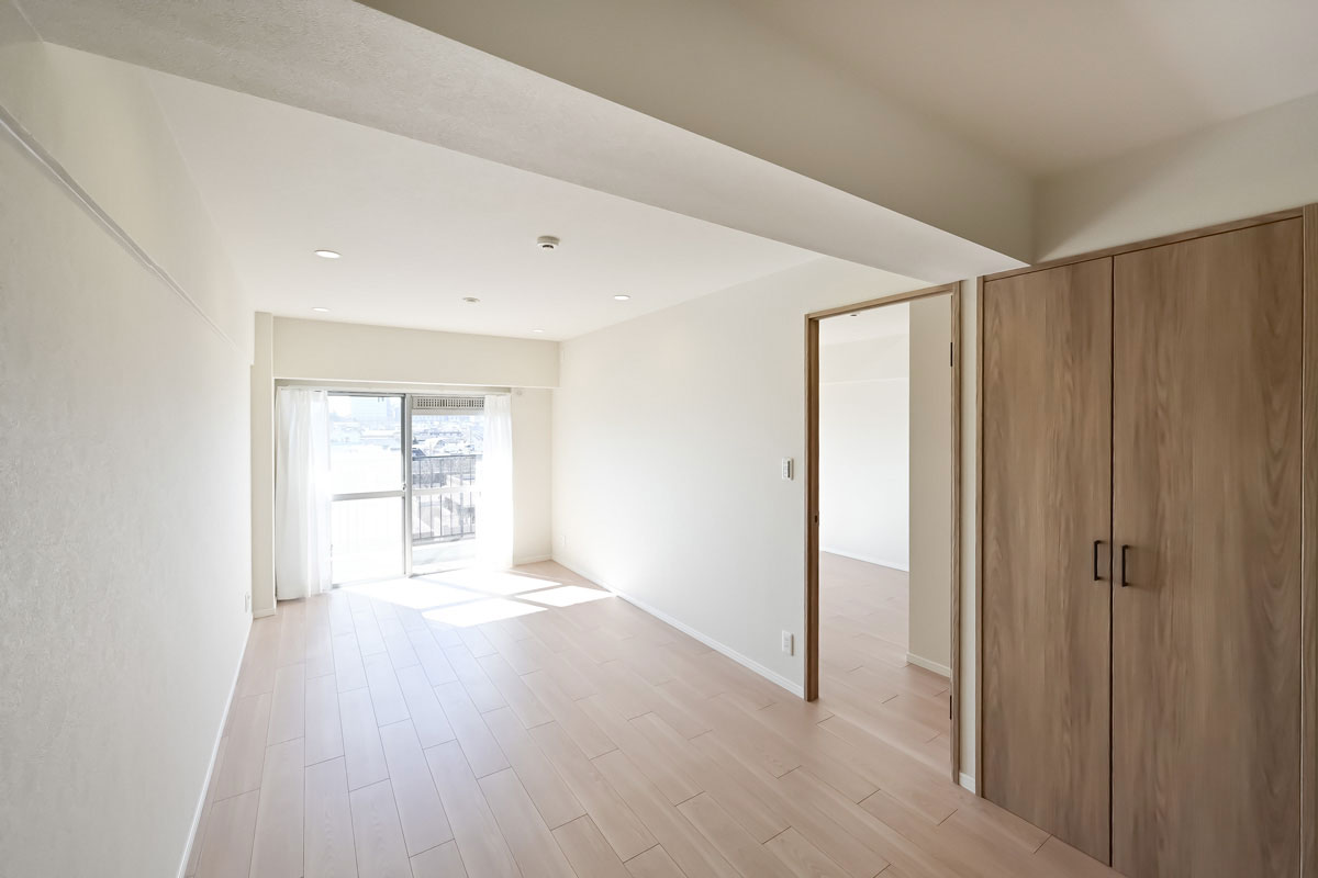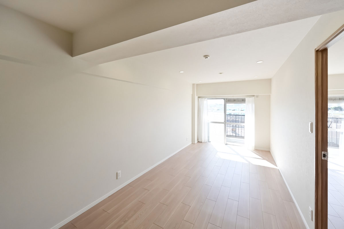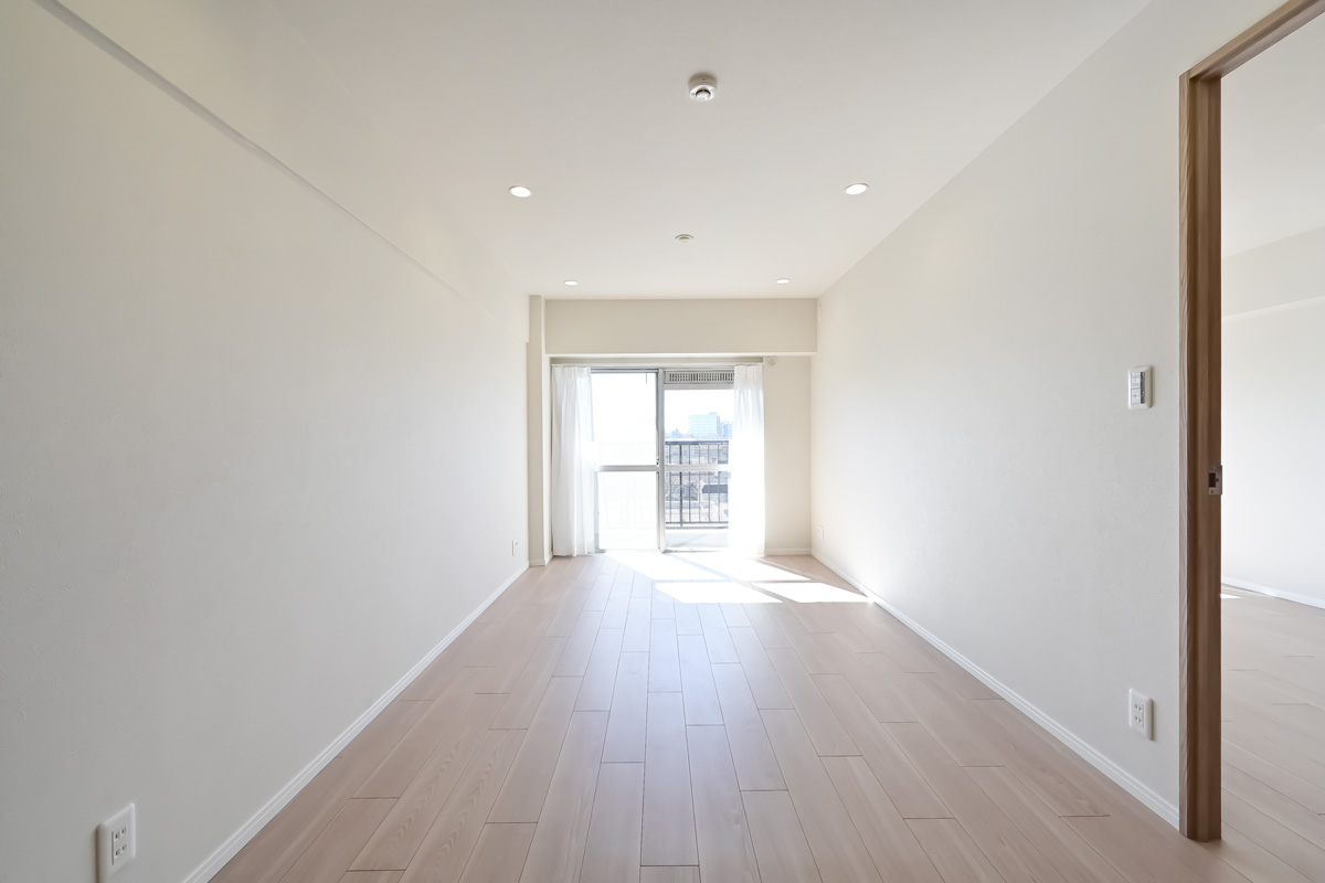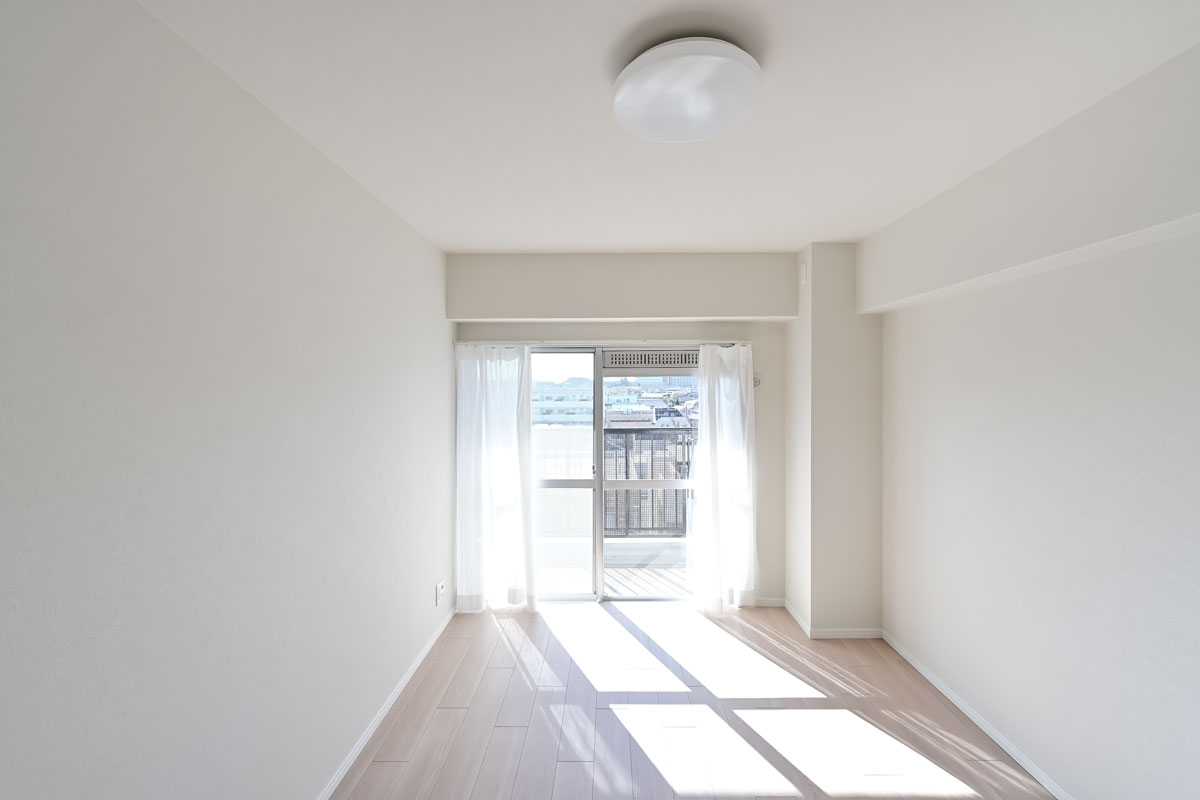 ご紹介するお部屋は6階、開放感たっぷりの眺望と、南向きの明るい日差しが魅力です。