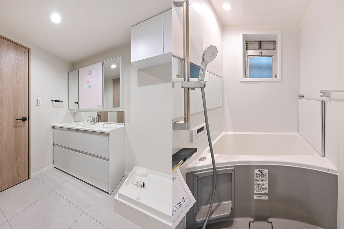 室内のリノベーションでは、システムキッチンやユニットバスなどの水回りや、フローリングやクロス、照明器具などが交換済みです。