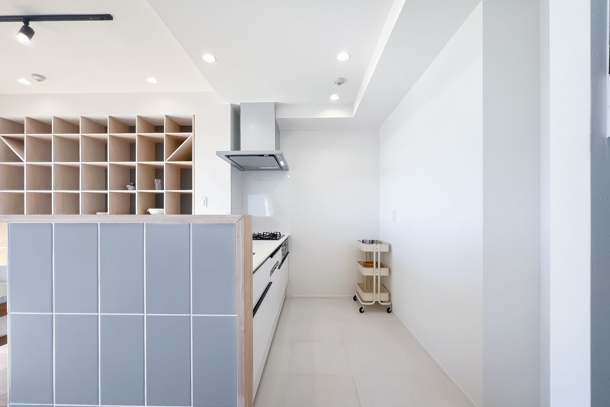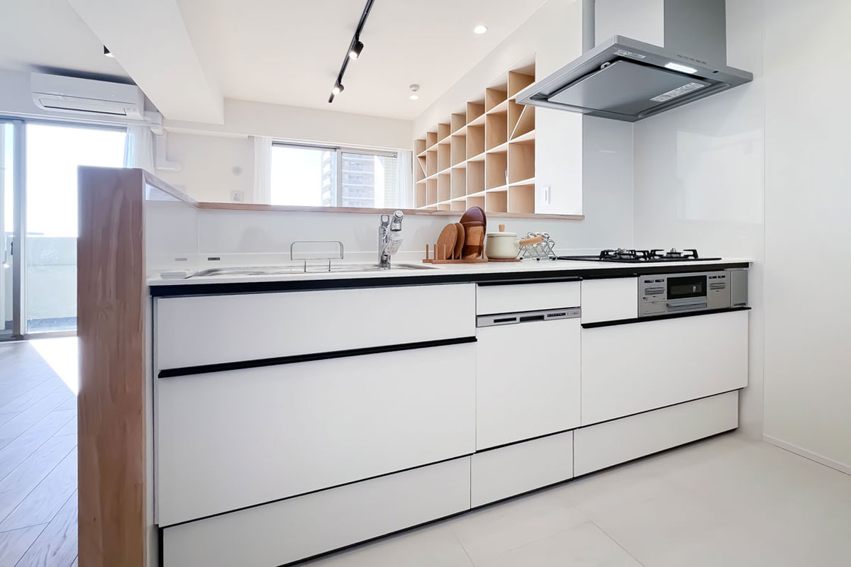 おしゃれなキッチンスペースは広々、お好みのパントリー棚が置けそうです。