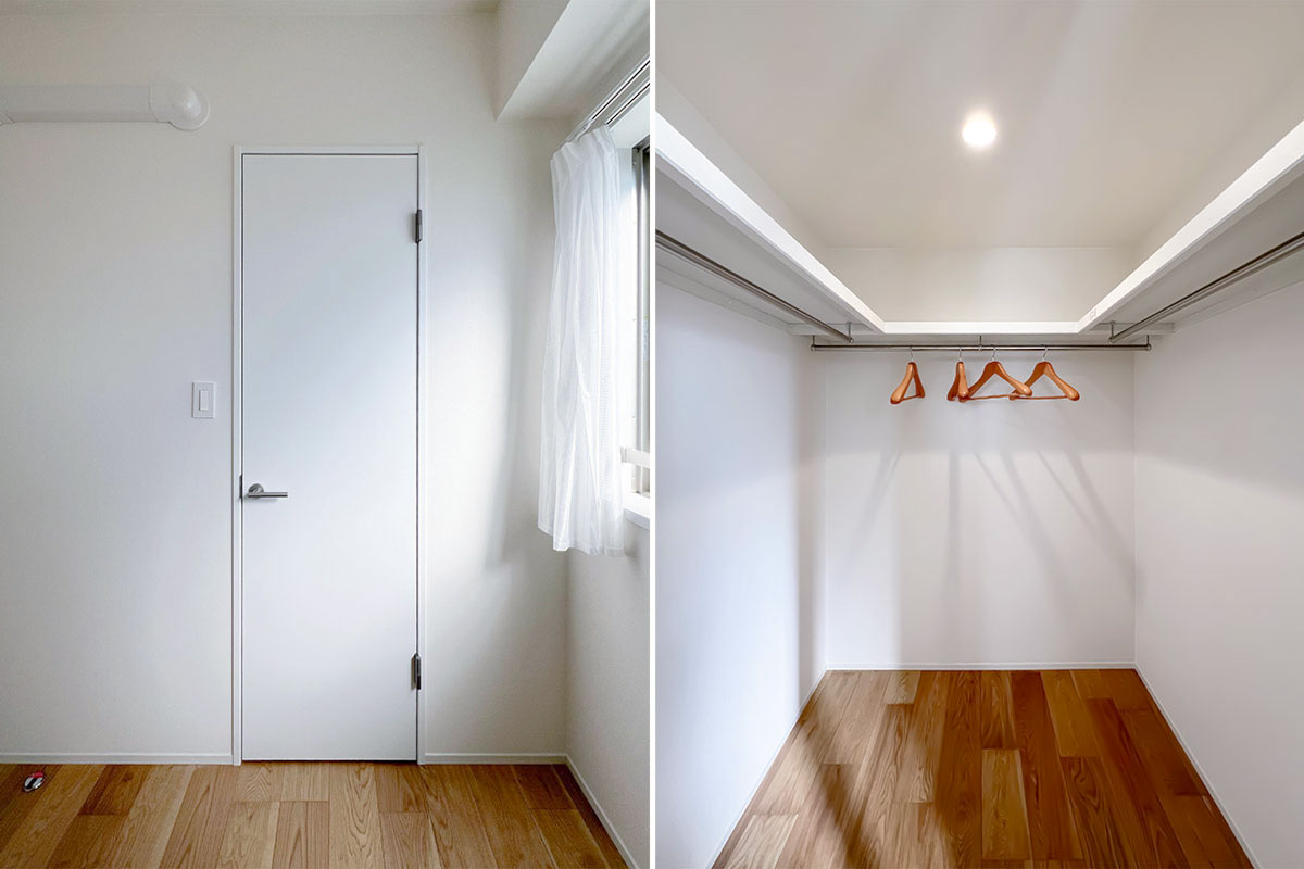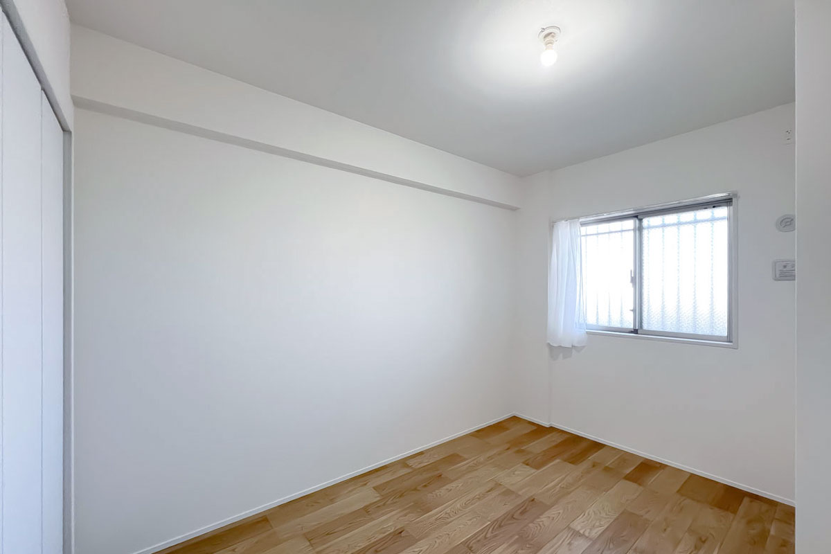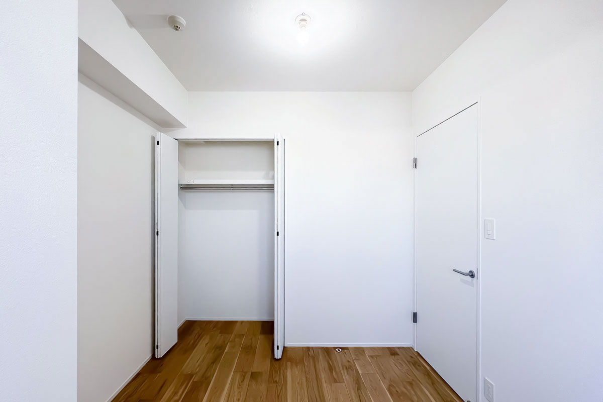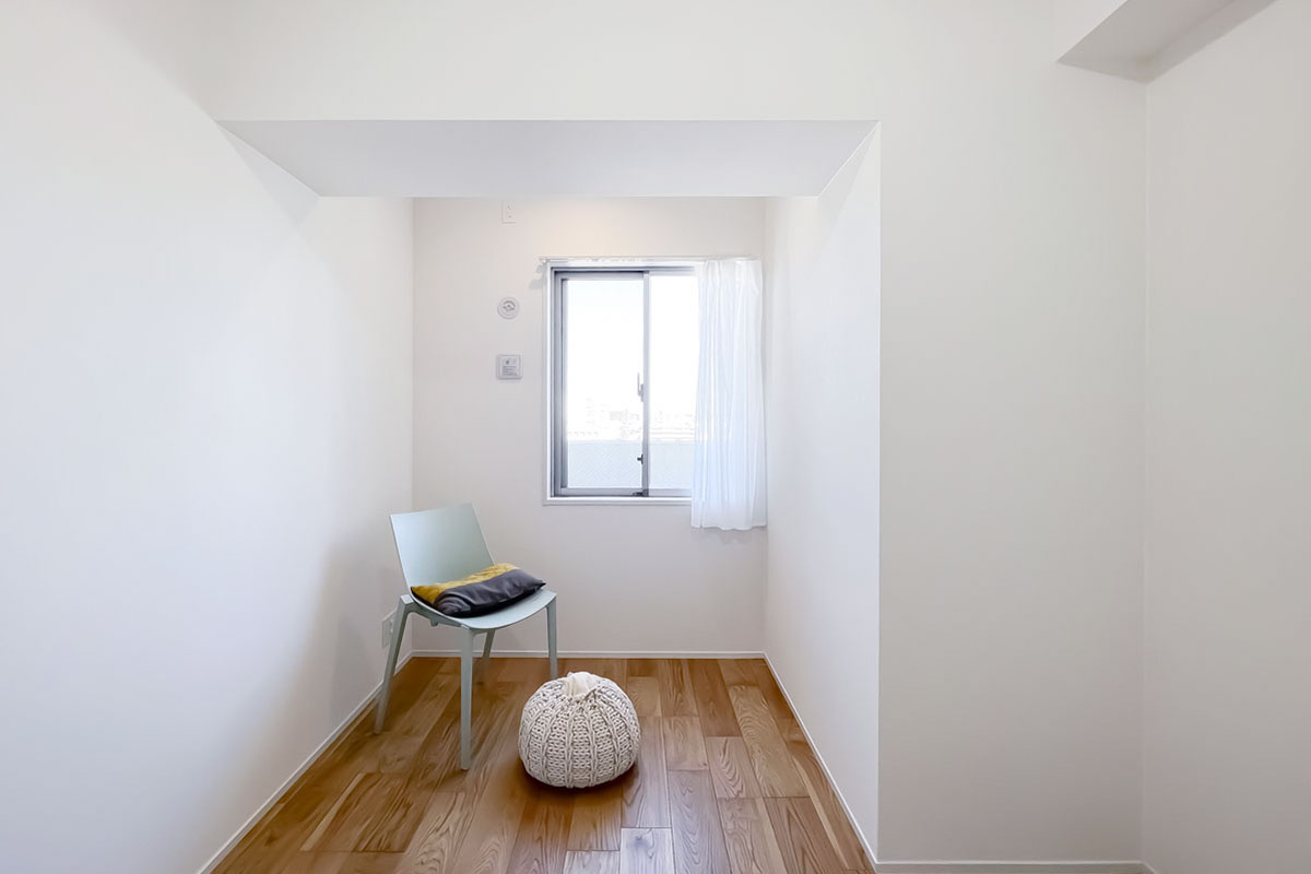 LDKに隣接する洋室とは室内窓でつながっているので、4.7帖とコンパクトですが開放感が感じられます。ウォークインクローゼットはコの字型で広々、他2つの洋室にもクローゼットがあり、ベランダにはトランクルーム(使用料負担有)もありました。居住空間を整理し、快適な生活を送ることができそうですね。