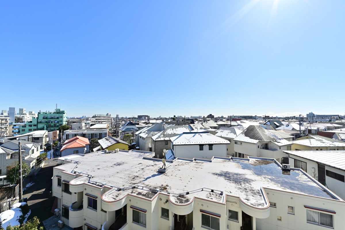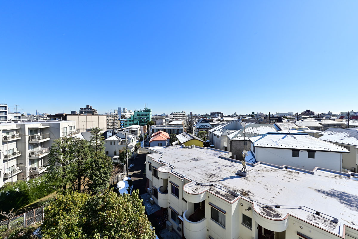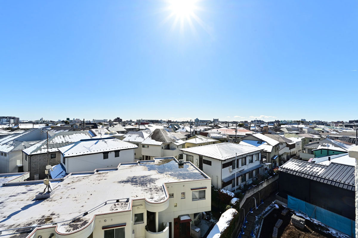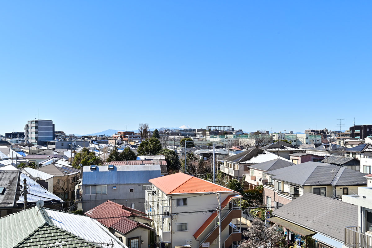 世田谷の街並みを一望することができる眺望の良さも大きな魅力です。取材時は、うっすらと雪化粧した東京の風景を楽しむことができました。