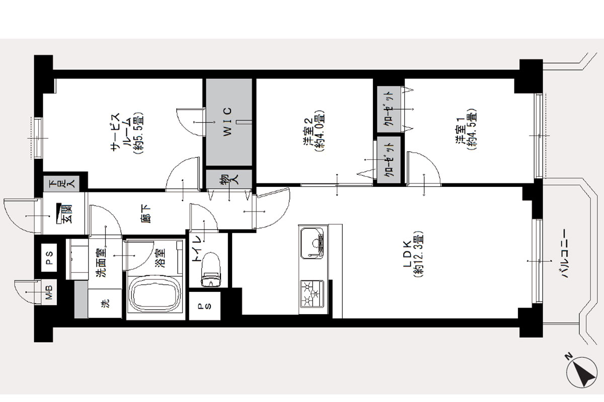 お部屋は4階、南東向きで、日当たり、通風とも良好です。