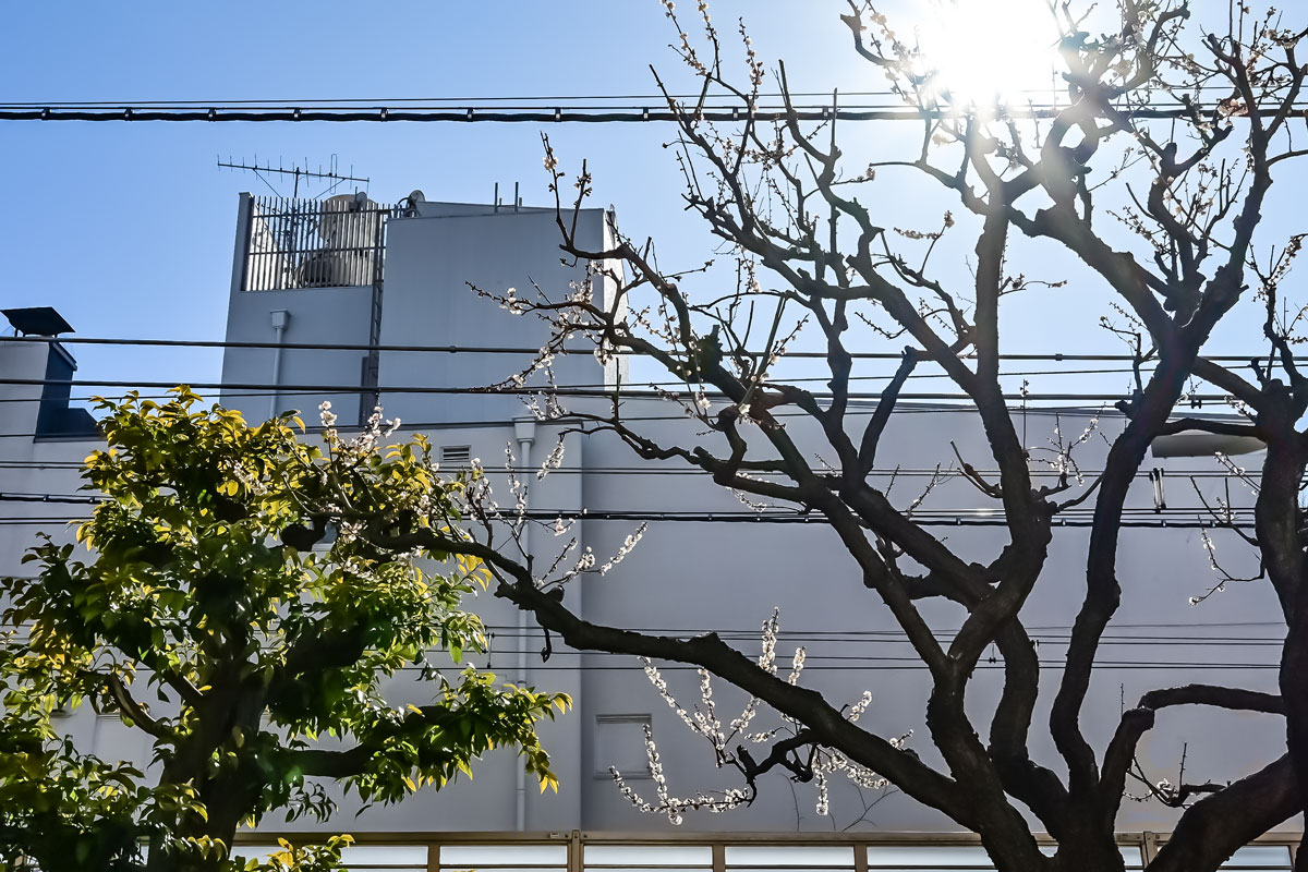シンボルツリーは梅。取材の日にはちょうど咲き始めたばかりの花を楽しむことができました。