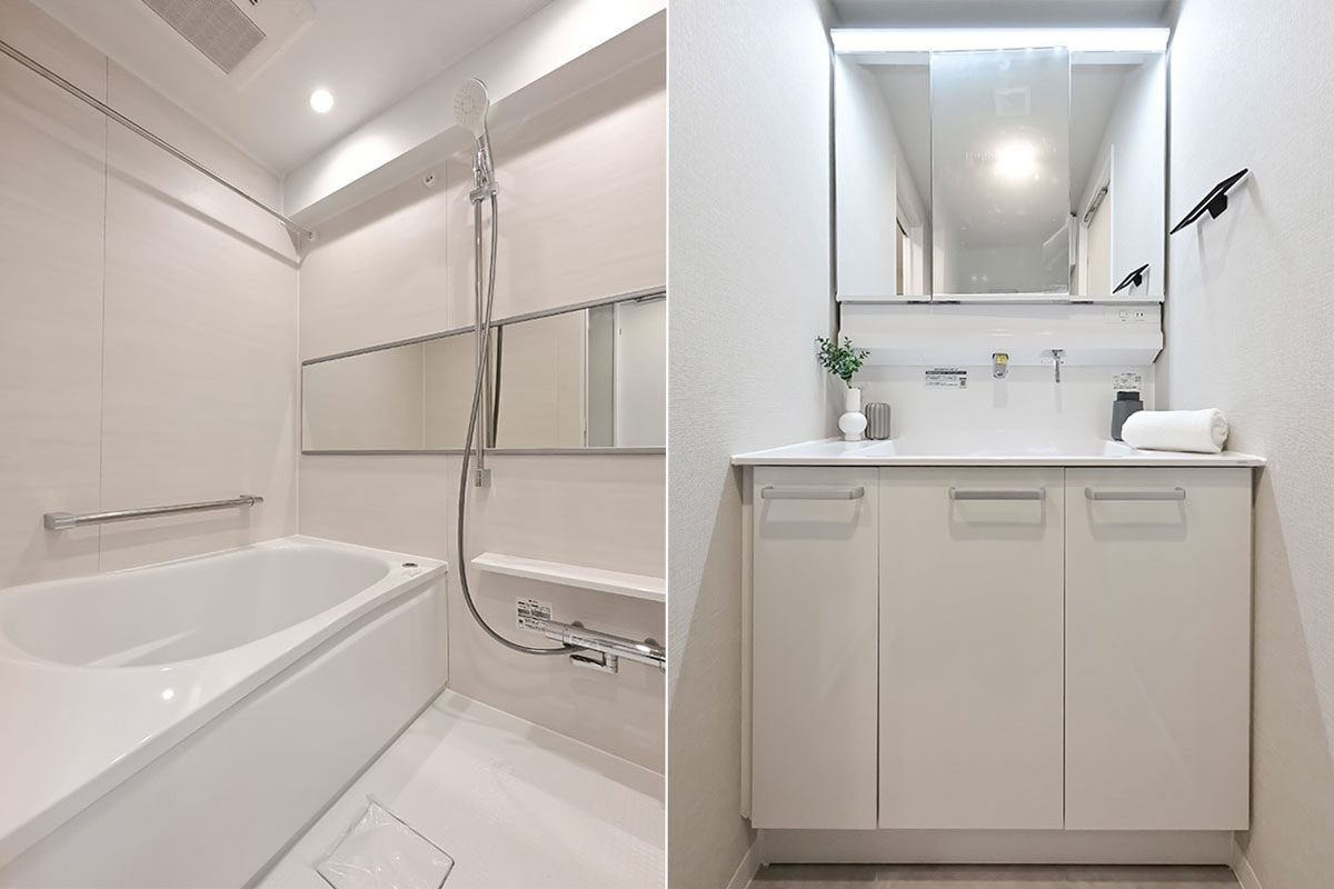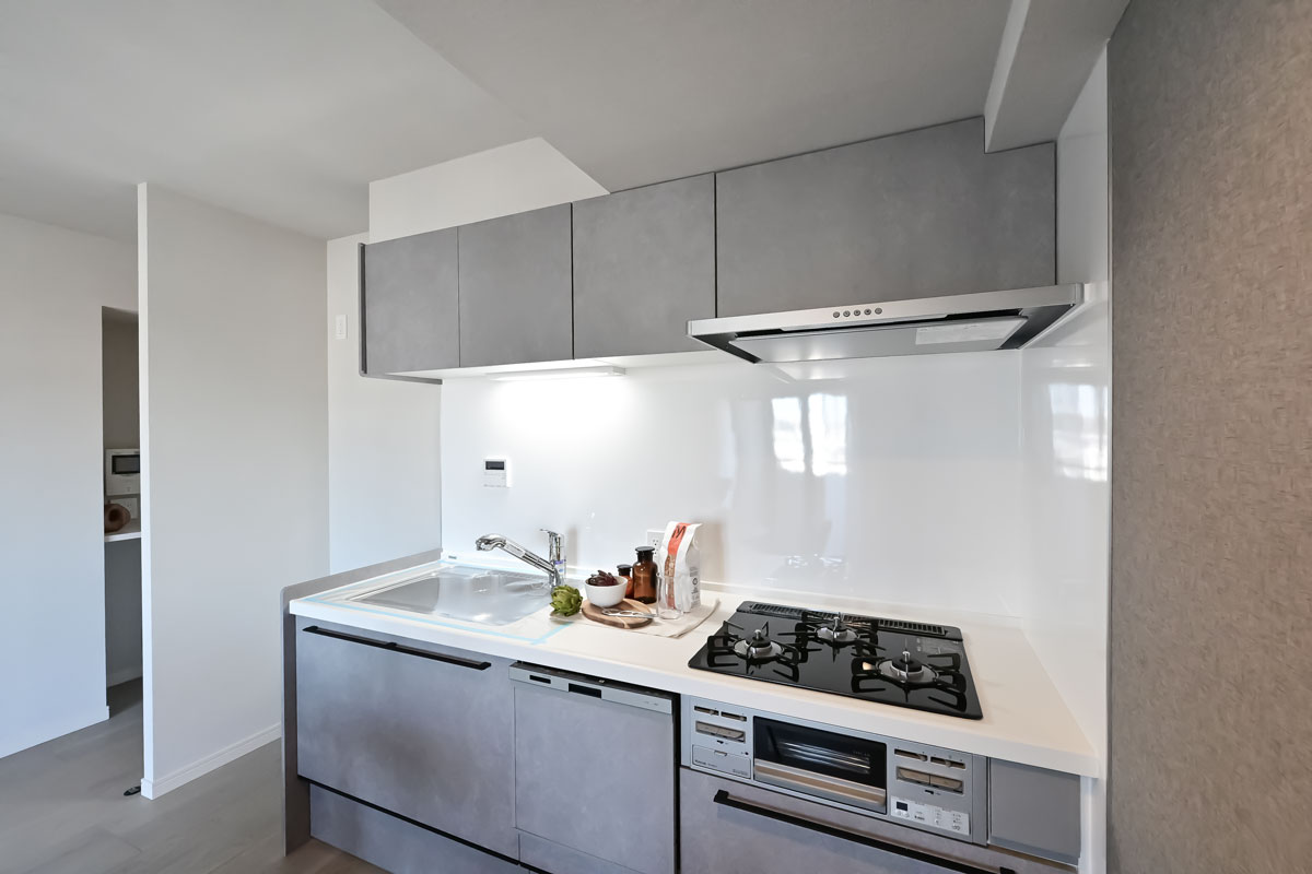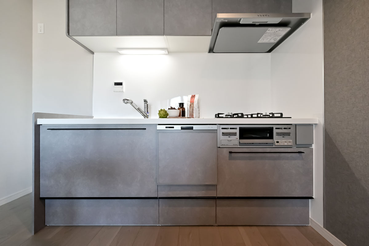 システムキッチンには食洗機・浄水機能付き水栓が備わり、ユニットバスには追焚き・乾燥機能、人感センサーなど、日々の暮らしをより快適にする設備も整っています。