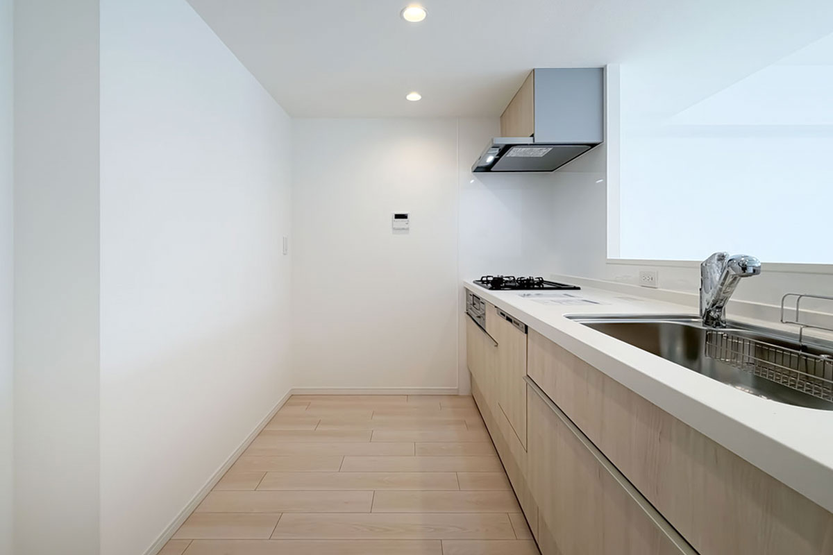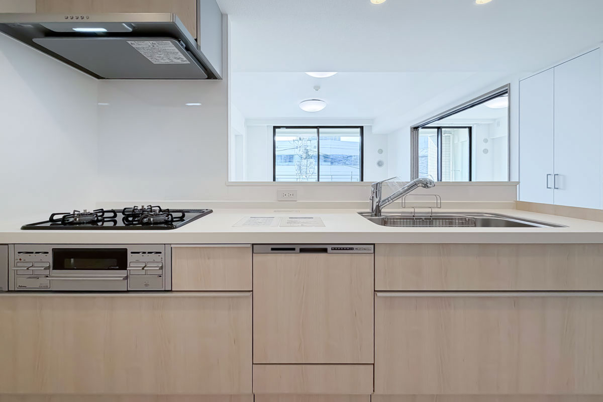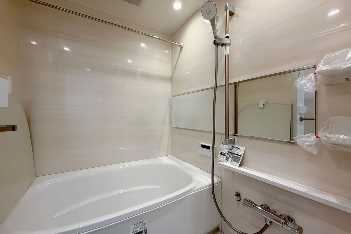 水まわりとしては、ディスポーザーと食洗機付きのシステムキッチン、乾燥換気暖房機能付きのバスルームなど、日々の生活を便利にしてくれる設備が整っていました。