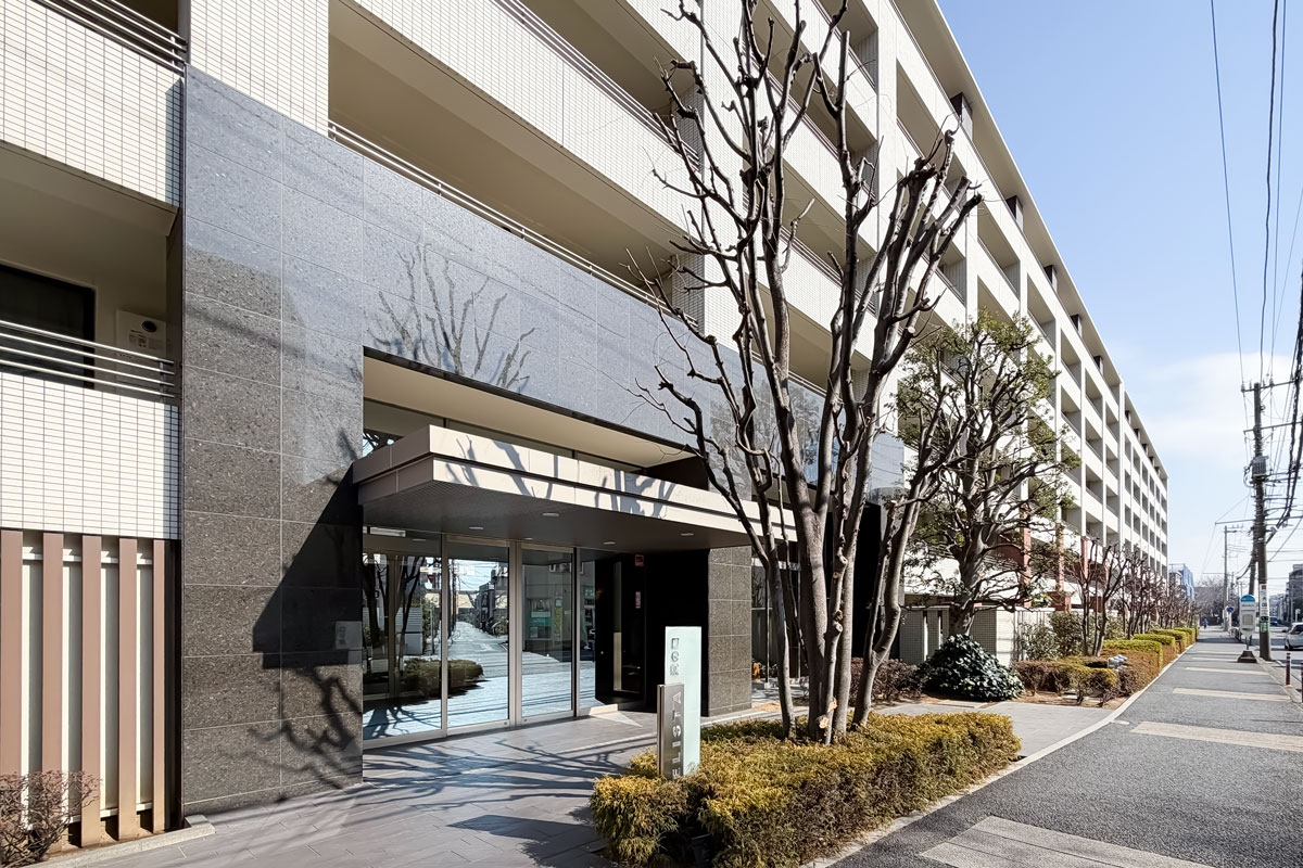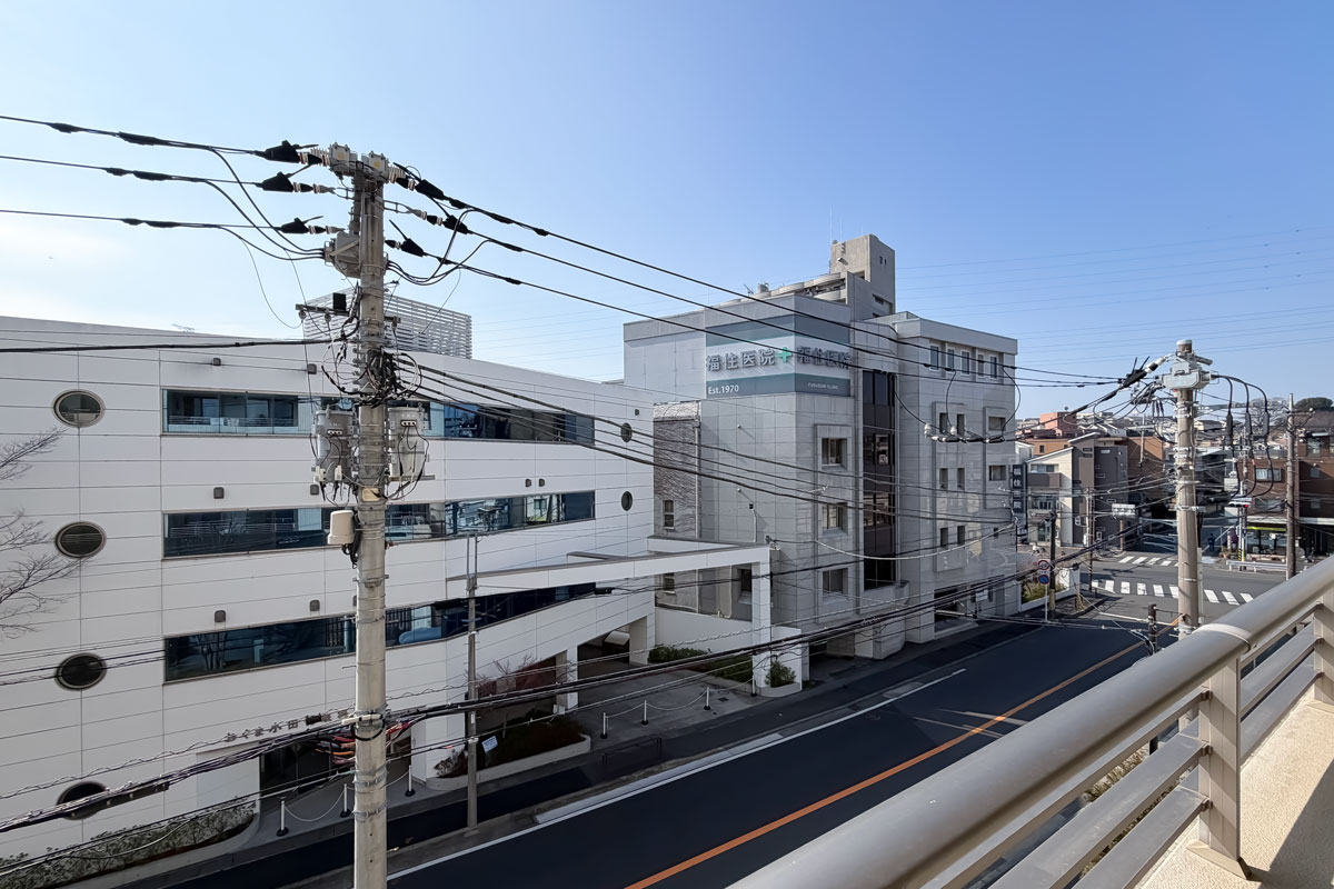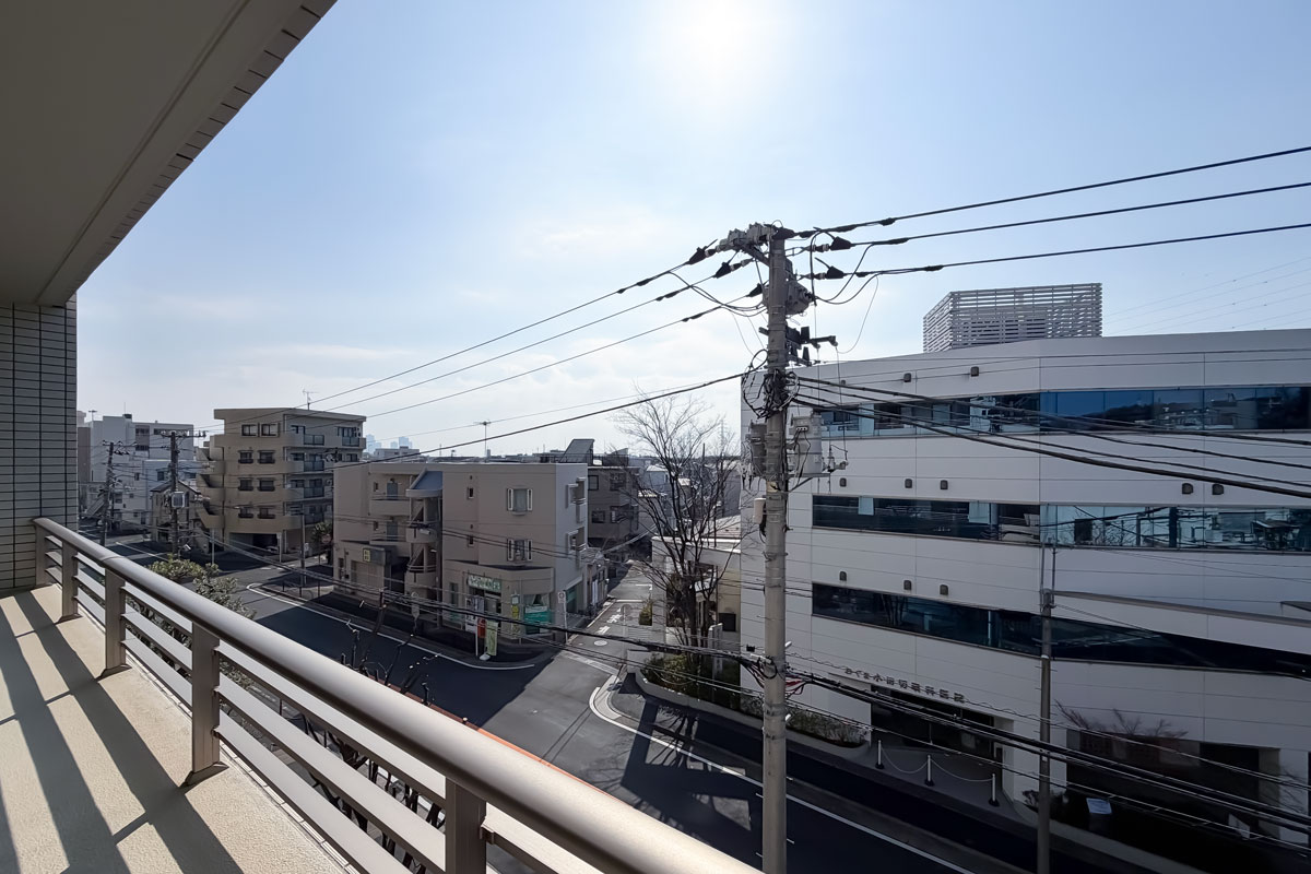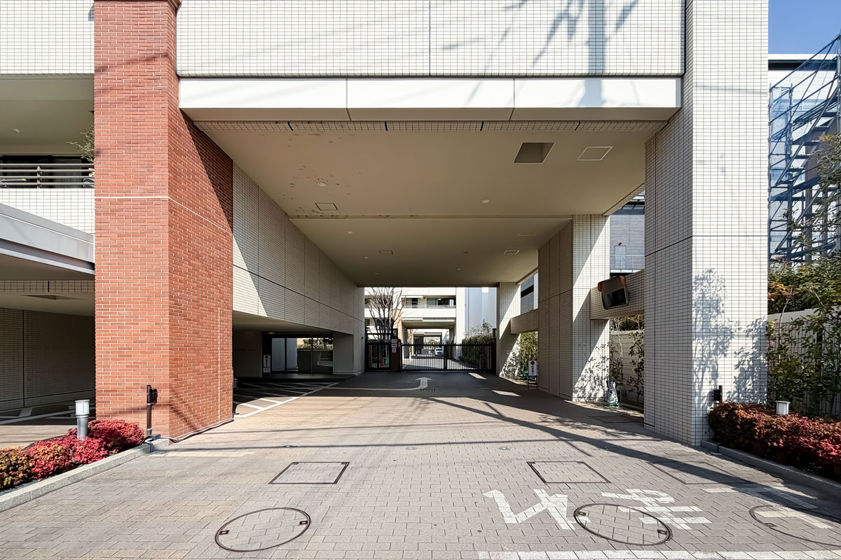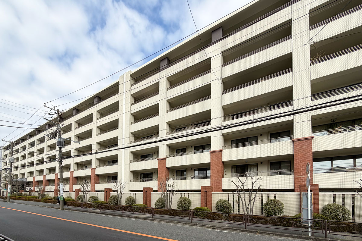 物件へは南口を出て東方面へ、道中には音楽で有名な洗足学園、川崎北税務署などがあります。黄色い外観の交番の角を左折し、道に沿う横長の建物が見えたら到着です。駅から約15分程度と距離が少しありますが、ビッグコミュニティならではのサービスが充実した魅力あふれるマンションです。