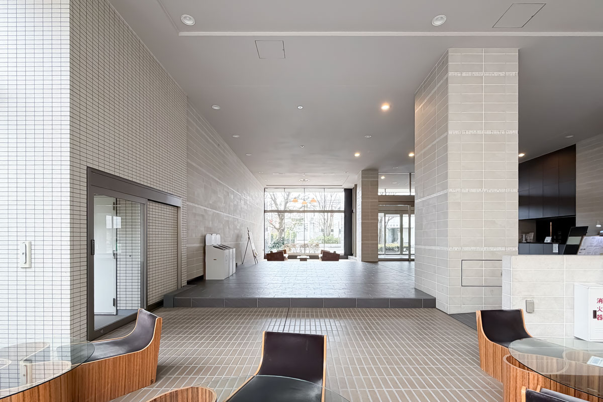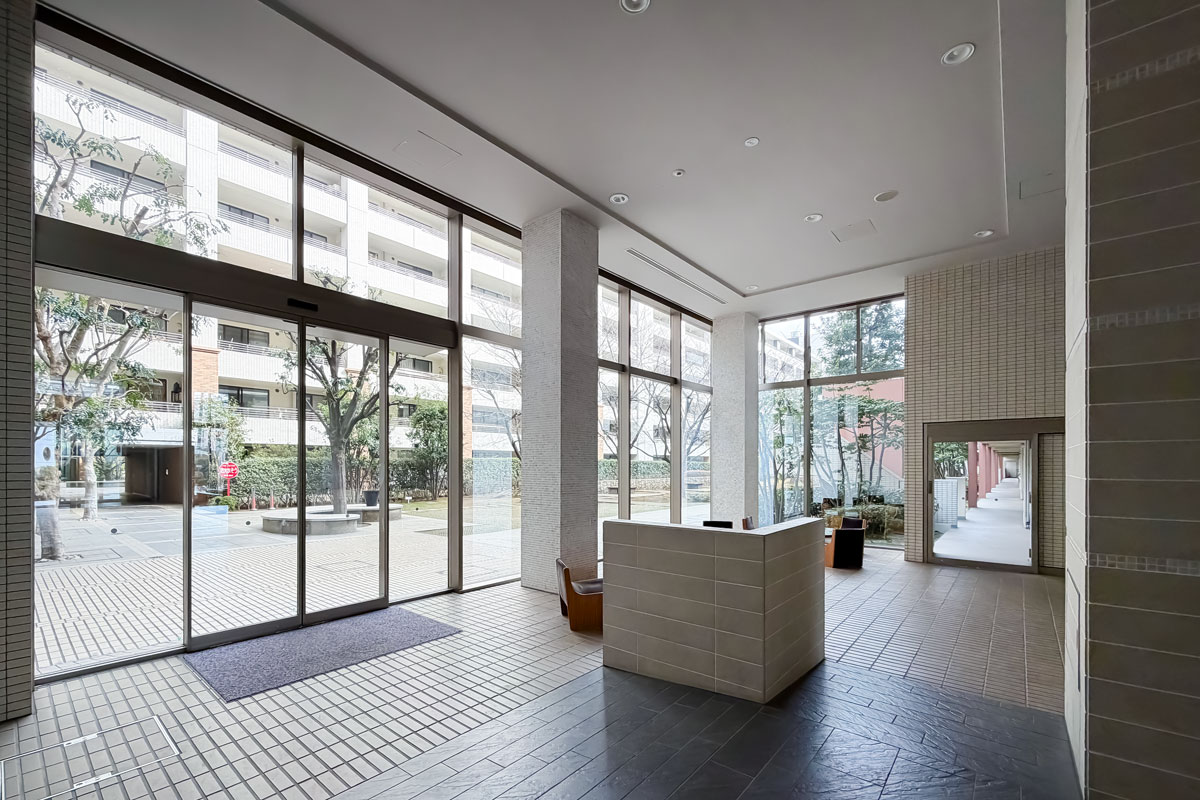 入口ではコンシェルジュさんがお出迎え(常駐時間に限る)、ホテルライクなロビーは明るく清潔。中庭があり、植栽もきれいに管理されていましたよ。
