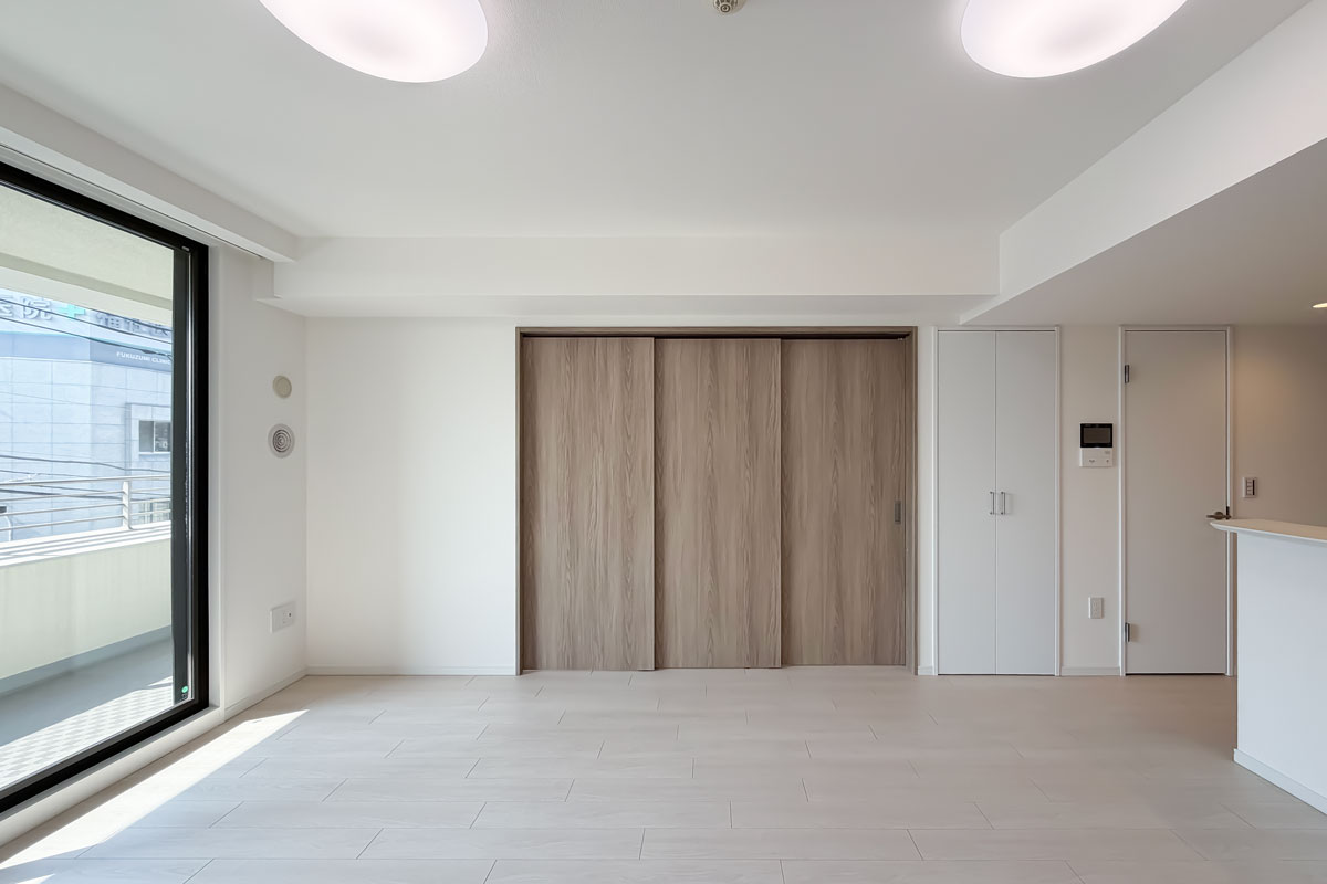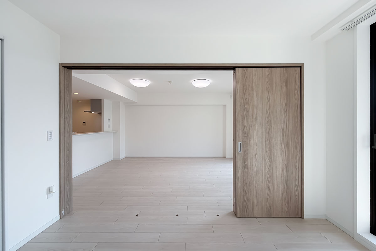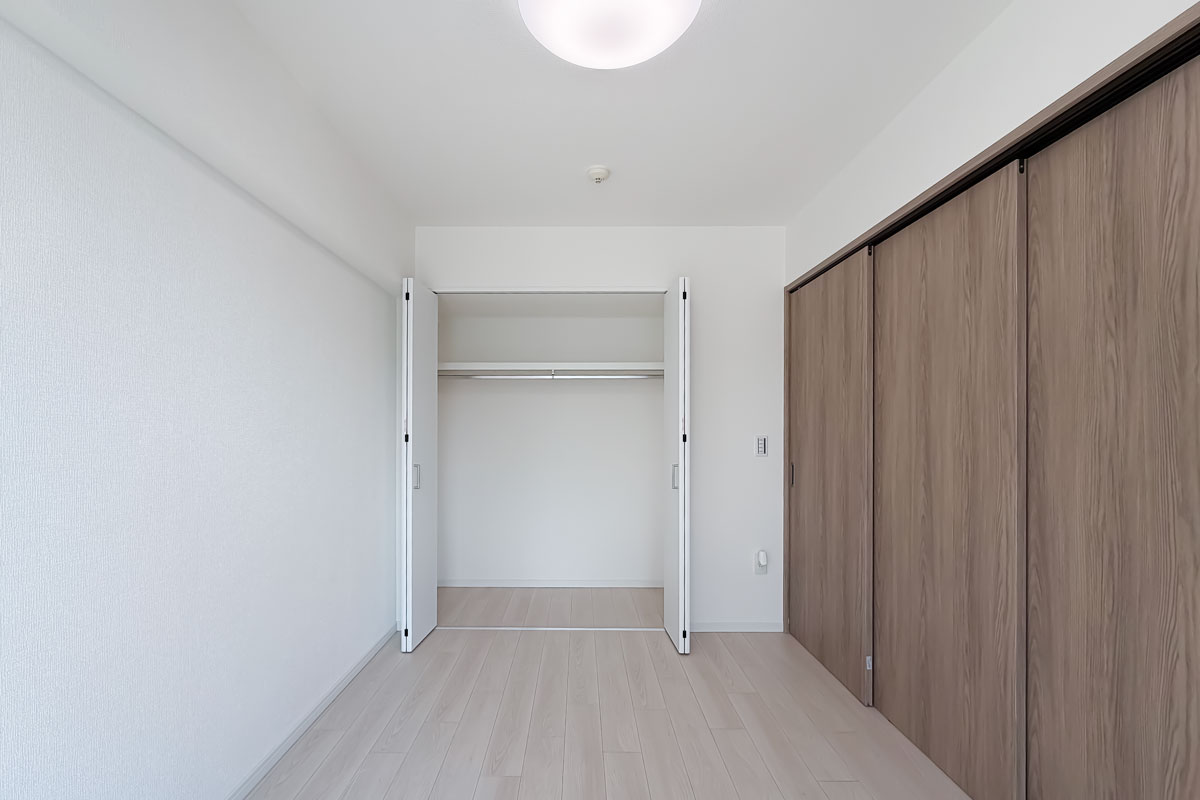 室内はリノベーションが完了したばかり、クロス・フローリング・建具が一新されています。各洋室には収納があり、約6.6帖の洋室にはウォークスルークローゼット。お部屋の中からも廊下からも出入りができる画期的なクローゼットです。