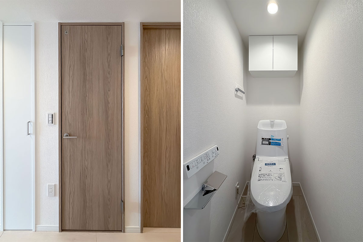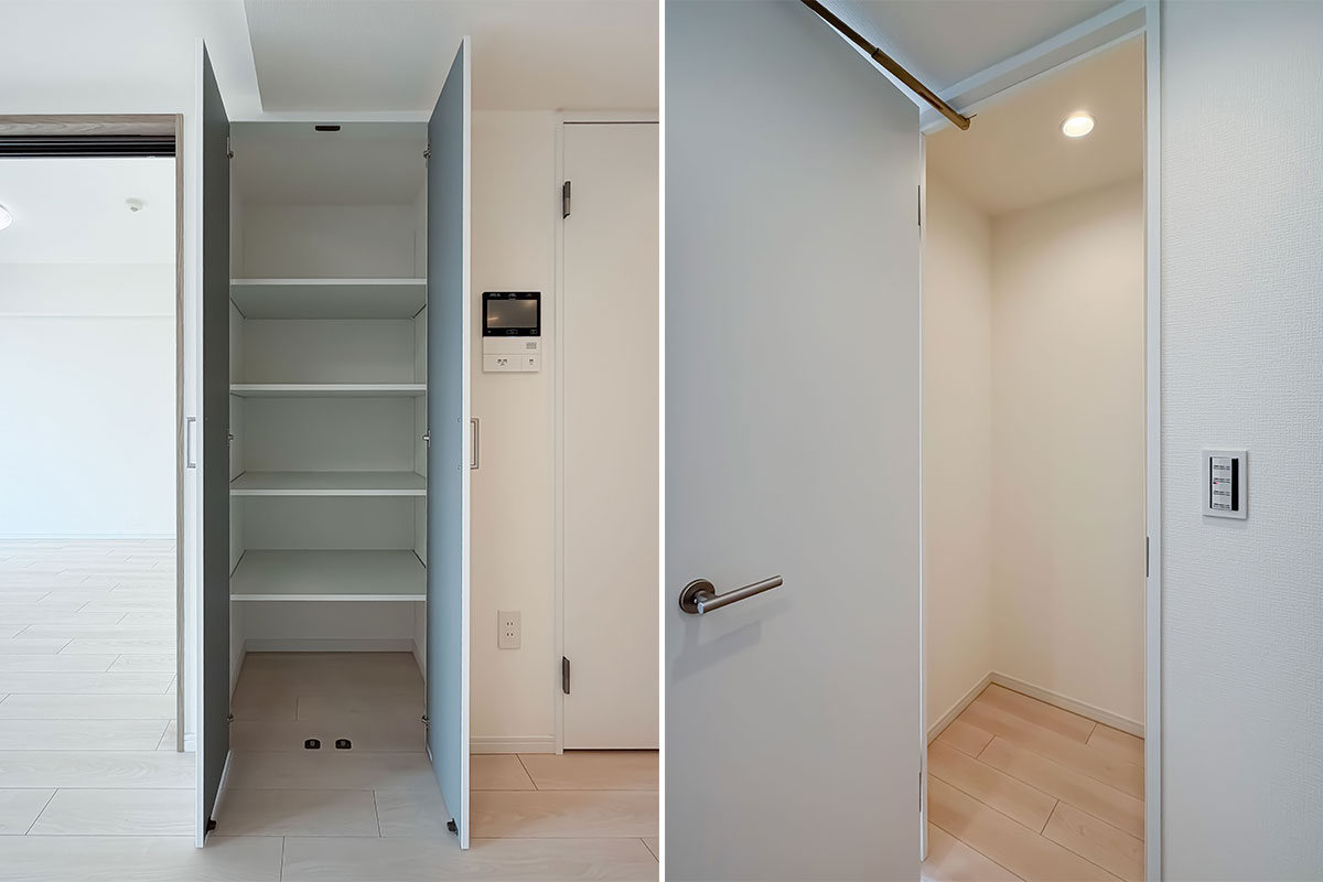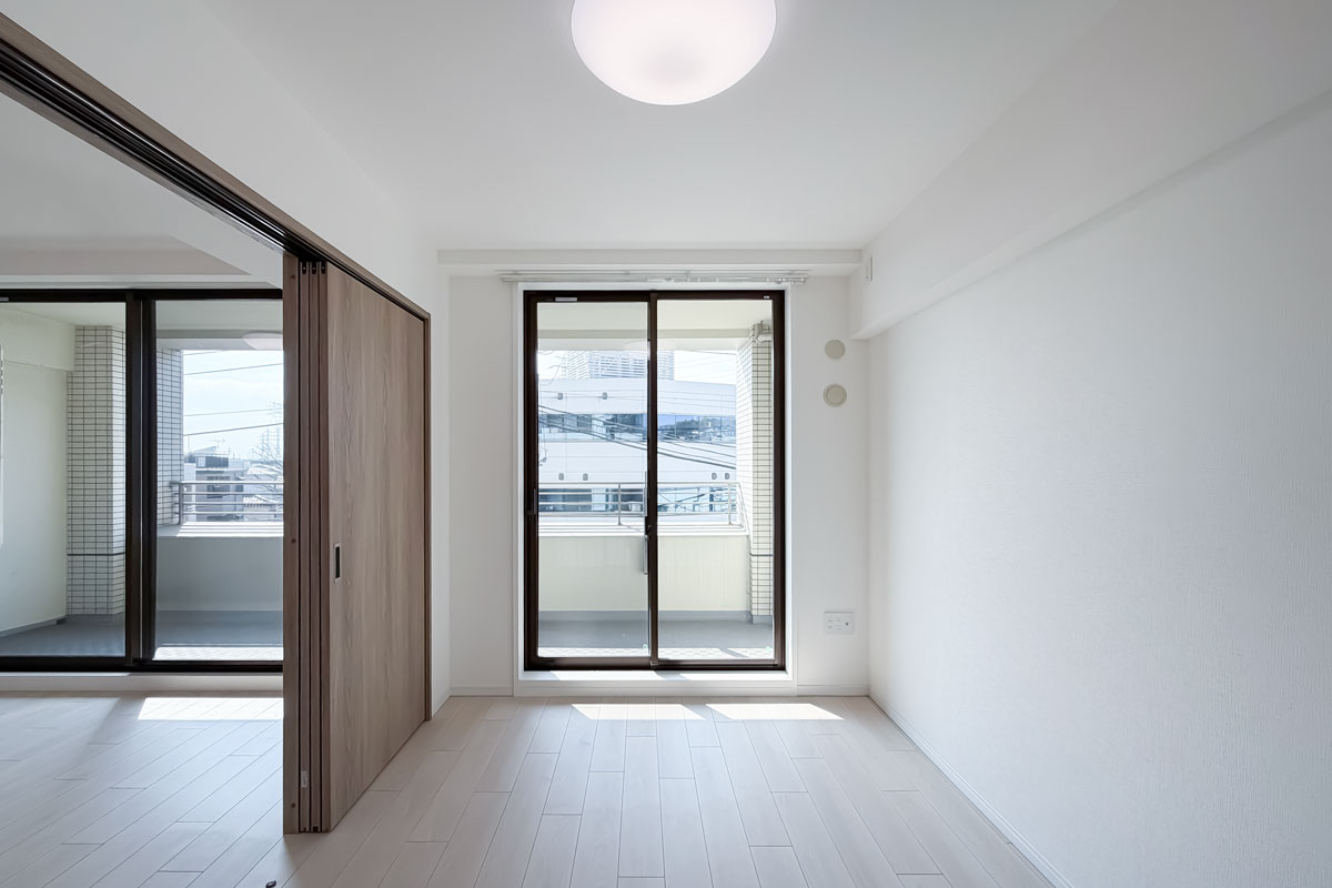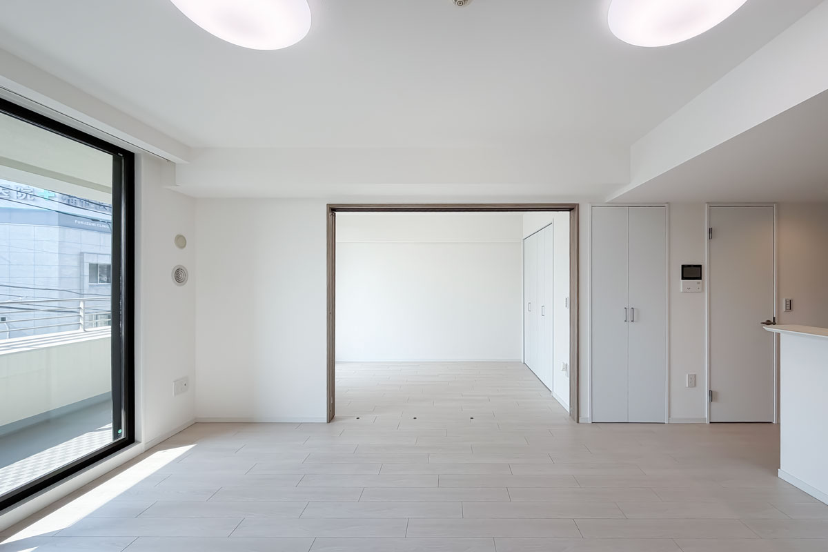室内はリノベーションが完了したばかり、クロス・フローリング・建具が一新されています。各洋室には収納があり、約6.6帖の洋室にはウォークスルークローゼット。お部屋の中からも廊下からも出入りができる画期的なクローゼットです。