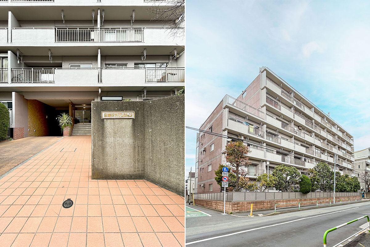 マンションは1970年築、環七通りから野沢交差点を入ってすぐの場所にあります。