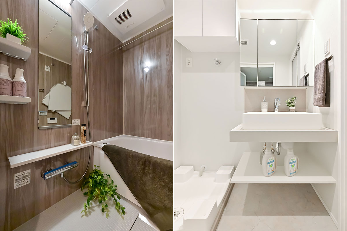 食洗機付きのシステムキッチン、追い焚き・乾燥機能を備えたユニットバス、洗浄機能付きトイレ、大型のウォークインクローゼット。
