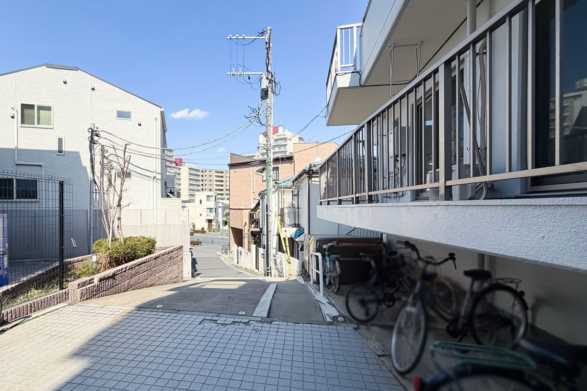 国道246号線を三軒茶屋方面へ歩き、鯛焼き屋さんを右に曲がり、真っすぐ北へ進むと見えてきます。京王井の頭線「池ノ上駅」も徒歩15分で利用可能、下北沢へは自転車で行けば10分程度で行けるので、利便性の高い立地です。