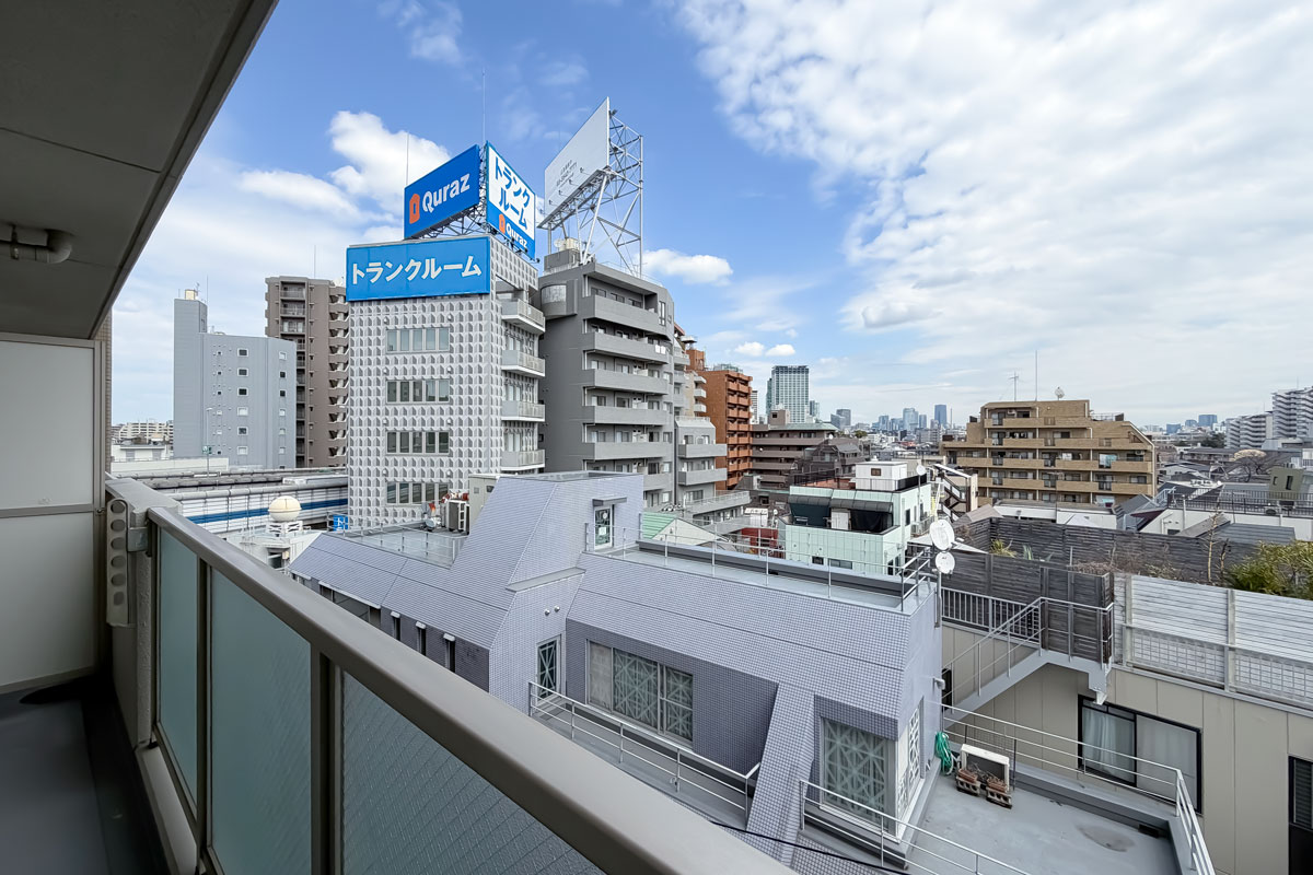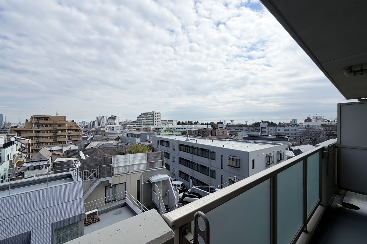 住宅街にあるので、眺望はそんなに期待できないかなと思っていたのですが、バルコニーからの景色は良好。掲載画像でははっきり見えないのですが、現地では東京タワーがしっかり確認できました。ぜひお天気の良い日に、現地でご確認頂きたいです。