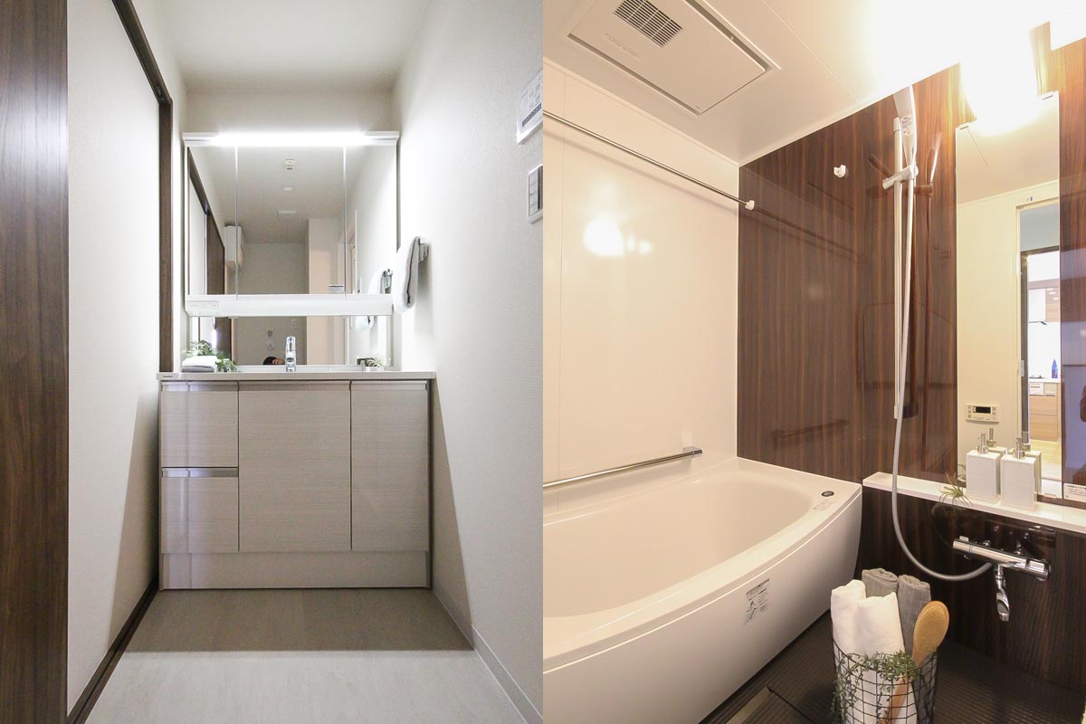 室内はリノベーション済。システムキッチンやユニットバス、洗面台など水周りも一新、浄水器や追い焚き機能、浴室乾燥機など設備も充実していました。お部屋は7階部分の東向き、通りに面していますので音は窓を開けると気になりますが、眺望の抜け感があって開放感のあるお部屋です。