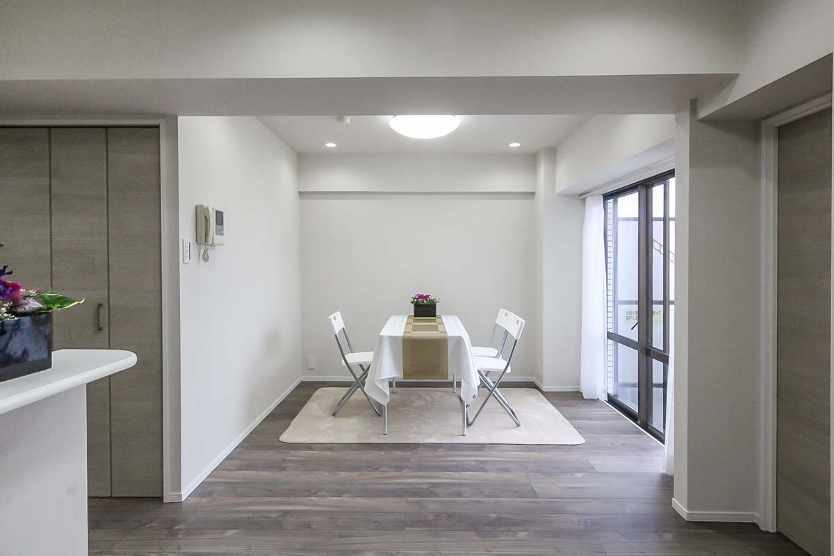 お部屋は5階部分で眺望も抜けていて日当たりも良く、窓を開けていても静かな環境です。室内は水周りから一新されたリノベーションが施された58.90平米の2LDKタイプの間取り。